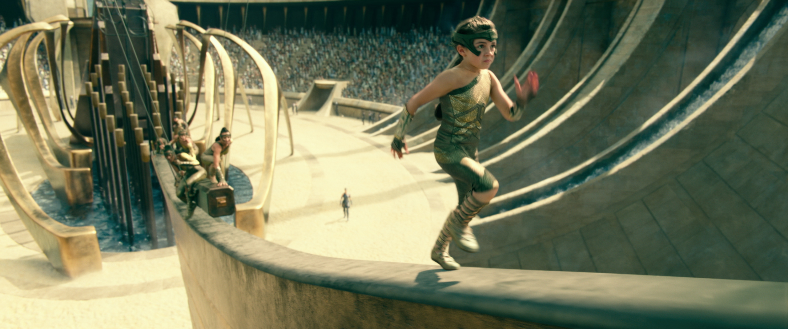 ปฏิเสธไม่ได้เลยจริง ๆ ว่าเสน่ห์ของภาพยนตร์ Wonder Woman อย่างหนึ่งเลยก็คือ บรรดาฉากเหตุการณ์ที่เกิดขึ้นบนเกาะเทอร์มิสกีร่า เกาะแห่งเหล่านักรบหญิงชาวแอมะซอน ในภาคแรกนั้นเราได้เห็นกันไปพอสมควร แต่ใน Wonder Woman 1984 นี้ เราได้เห็นกันเพียงแค่ฉากเปิดเรื่องเท่านั้นเอง กับฉากงาน Amazon Games ที่ไดอาน่าตัวน้อยเข้าร่วมแข็งขันด้วย และต้องยอมรับจริง ๆ ว่านั่นคือฉากที่ยอดเยี่ยมที่สุดฉากหนึ่งในภาพยนตร์เรื่องนี้เลยทีเดียว ซึ่งหนูน้อยที่มารับบทเป็นไดอาน่าวัยเด็กก็คือ Lilly Aspell คนเดียวกับที่แสดงในภาพยนตร์ภาคแรก และในตอนนี้เธอก็อายุเพียงแค่ 13 ปีเท่านั้น