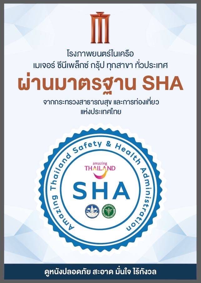 ดูหนัง...ปลอดภัย สะอาด มั่นใจ ไร้กังวล ที่ผ่านมาตราฐาน SHA จากกระทรวงสาธารณสุข และ การท่องเที่ยวแห่งประเทศไทย โรงภาพยนตร์ในเครือ เมเจอร์ ซีนีเพล็กซ์ กรุ้ป พร้อมให้บริการลูกค้าทุกท่านที่แวะมาขมภาพยนตร์ได้มั่นใจหายห่วง เพราะเราดูแลความสะอาด ปลอดภัยภายใต้มาตรการคุมเข้มขั้นสูงสุด ตลอดการให้บริการ อาทิ