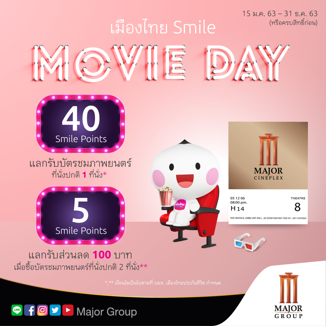 “เมืองไทย Smile Movie Day 2020”- -Smile Club 5 points รับส่วนลด 100 บาท