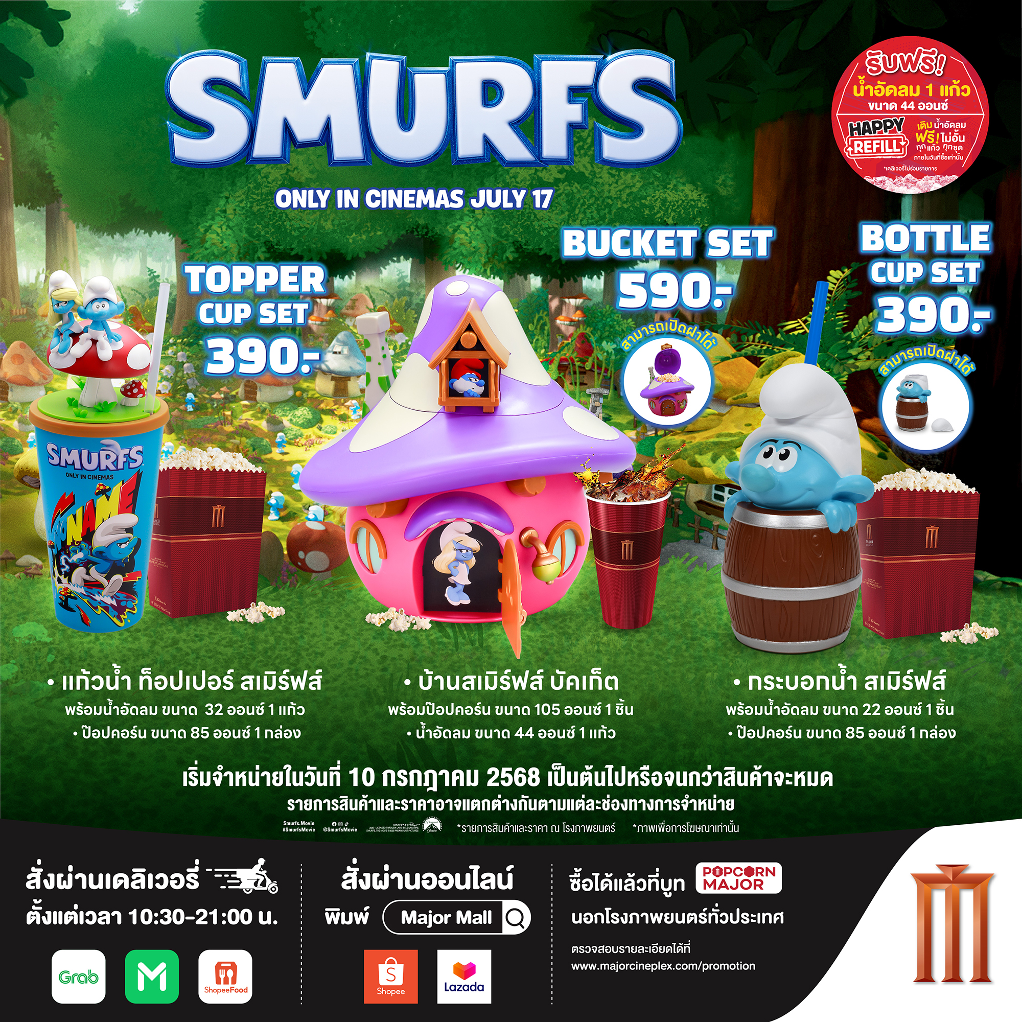 +แก้วน้ำท็อเปอร์ สเมิร์ฟส์ พร้อม ขนาด 32 ออนซ์ (มี 2 แบบให้เลือกสะสม คือ ทีเร็กซ์ หรือ โมซาซอรัส) (ฉพาะ packaging ไม่รวมน้ำอัดลม)