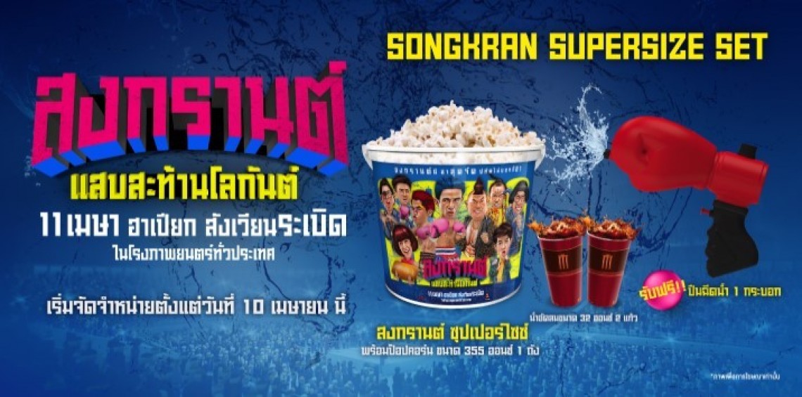- สงกรานต์ ซุปเปอร์ ไซซ์ พร้อมป๊อปคอร์นขนาด 355 ออนซ์ 1 ถัง