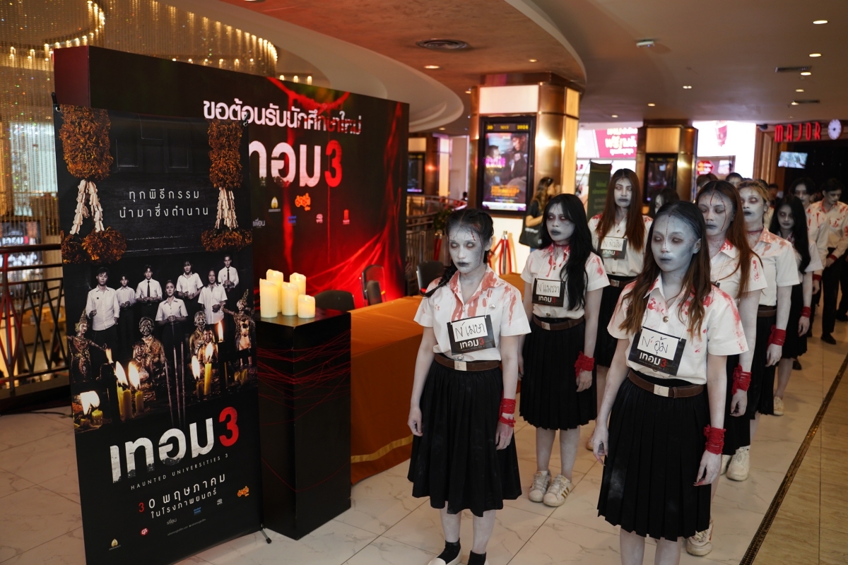 โดยงานนี้จัดเต็มทุกพิธีกรรมต้อนรับนักศึกษาน้องใหม่ของมหาวิทยาลัย เรียกน้ำย่อยความสนุกสุดหลอนด้วยหลากหลายกิจกรรมหน้าโรง พร้อมลงชื่อลุ้นของรางวัลจากพี่เทค ตื่นตาตื่นใจไปกับการบูมของเหล่านักศึกษาผีรุ่นพี่ และการบายศรีสุดขลังที่เปิดให้เหล่าสื่อมวลชนและแฟนคลับเข้าร่วมพิธีพร้อมรับ “โปสเตอร์คาแร็กเตอร์” เป็นของที่ระลึก ก่อนที่จะเข้าไปร่วมงานสอบสัมภาษณ์นักศึกษาใหม่กันภายในโรงภาพยนตร์