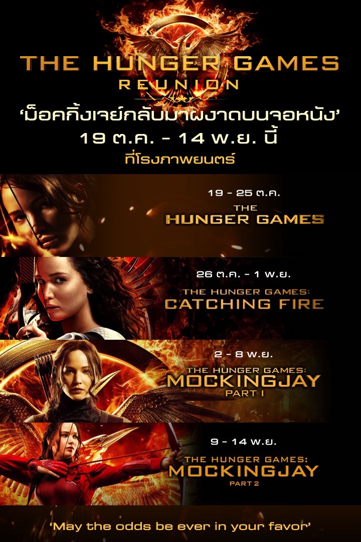 จากปรากฏการณ์ภาพยนตร์แฟนตาซีฟอร์มยักษ์ที่อยู่ในใจคนทั้งโลกมาตลอดสำหรับ The Hunger Games หนึ่งในแฟรนไชส์ภาพยนตร์ที่สร้างจากหนังสือเบสต์เซลเลอร์ที่ประสบความสำเร็จสูงสุดตลอดกาลด้วยการกวาดรายได้ทะลุ 3 พันล้านเหรียญฯ ทั่วโลก และส่งให้ เจนนิเฟอร์ ลอว์เรนซ์ กลายเป็นซูเปอร์สตาร์สาวดังชั่วข้ามคืน เรื่องราวของสาวน้อยผู้มากับไฟ ‘แคตนิส เอเวอร์ดีน’ กับการต่อสู้เพื่อปลดปล่อยคนทั้งพาเน็มจากอำนาจของแคปิตอล และปี 2023 เพื่อเป็นการจุดสัญญาณไฟต้อนรับการกลับมาของแฟรนไชส์สุดยิ่งใหญ่นี้ใน The Hunger Games: The Ballad of Songbirds & Snakes ภาพยนตร์ปฐมบทและจุดเริ่มต้นของเกมล่าชีวิตที่โลกไม่เคยเห็น ล่าสุด มงคลเมเจอร์ และ ไลออนส์เกตส์ ขอประกาศพาทุกคนย้อนรอยสู่มหากาพย์เกมล่าชีวิต ด้วยการนำภาพยนตร์ทั้ง 4 ภาคกลับมาฉายอีกครั้งบนจอใหญ่ ดังนี้