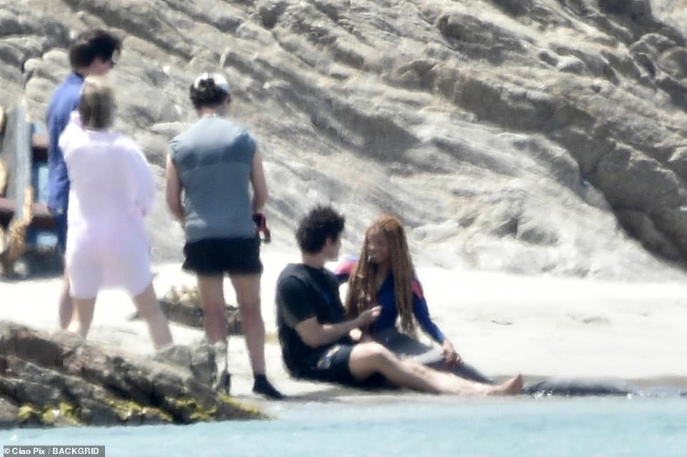 ภาพข้างล่างนี้เป็นภาพหลุดจากเบื้องหลังการถ่ายทำของภาพยนตร์เรื่อง The Little Mermaid ยังไม่ชัวร์ว่าเป็นการฝึกซ้อม หรือการถ่ายทำจริง แต่ดูจากบรรยากาศและท่าทางของนักแสดงแล้ว นี่น่าจะเป็นฉากที่แอเรียลช่วยเหลือเจ้าชายอีริคจากเหตุการณ์เรือล่มอย่างแน่นอน ฉากนี้นับว่าเป็นอีกฉากที่เป็นฉากน่าจดจำของแอนิเมชั่นเลยทีเดียว จะเป็นอย่างไรไปดูกัน