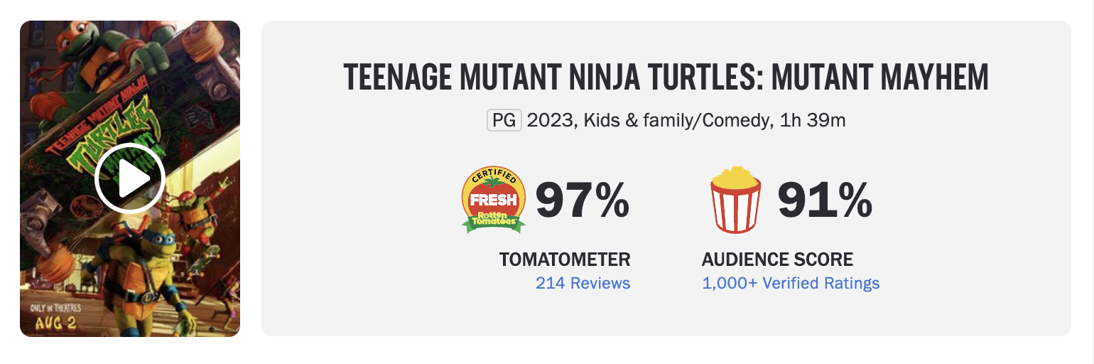 เปิดคะแนน TMNT Mutant Mayhem อีกหนึ่งแอนิเมชั่นเรื่องเยี่ยมประจำปี
