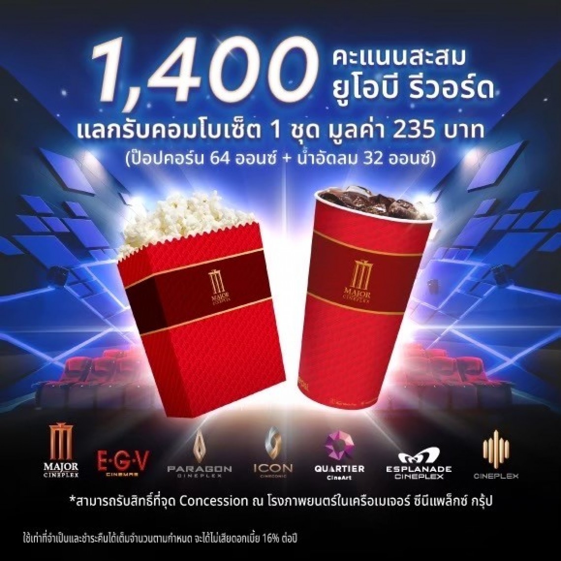 • โปรโมชั่นนี้สามารถรับสิทธิ์ได้ที่โรงภาพยนตร์สาขาเมเจอร์ ซีนีเพล็กซ์, อีจีวี ทุกสาขา ทั่วประเทศ