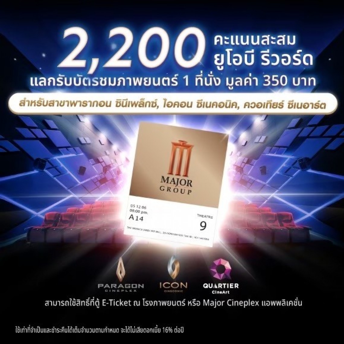 • โปรโมชั่นนี้สำหรับรับสิทธ์ ที่ตู้ E-Ticket และ Major application