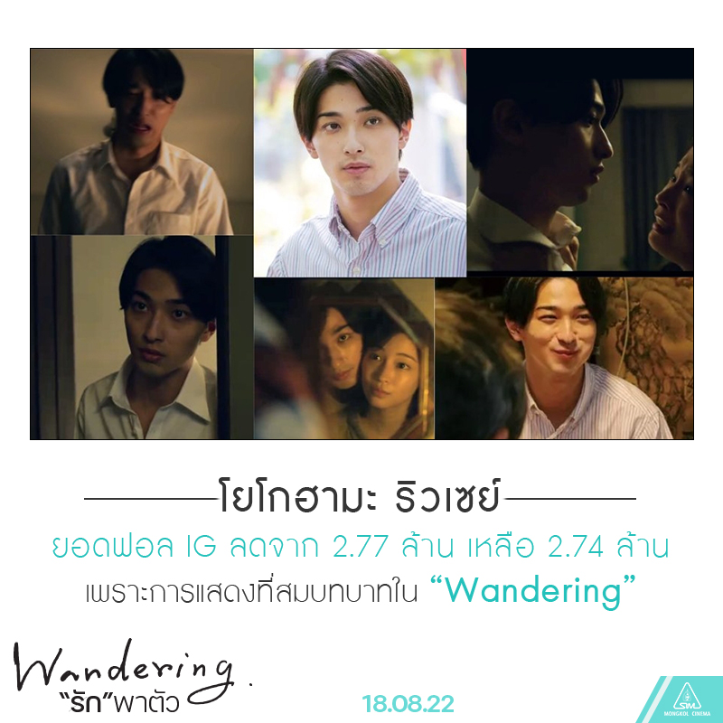 โยโกฮามะ ริวเซย์ รับบทเรียว ชายที่เป็นคนรักของซาระสะ หญิงสาวที่ถูกสังคมตราว่าเป็น สาวผู้โชคร้าย จากการเป็นเหยื่อคดีลักพาตัวภาพยนตร์เรื่อง “ WANDERING “ ถือเป็นการท้าทายบทบาทใหม่ของโยโกฮามะ พอถามถึงสิ่งที่เปลี่ยนไปแล้ว