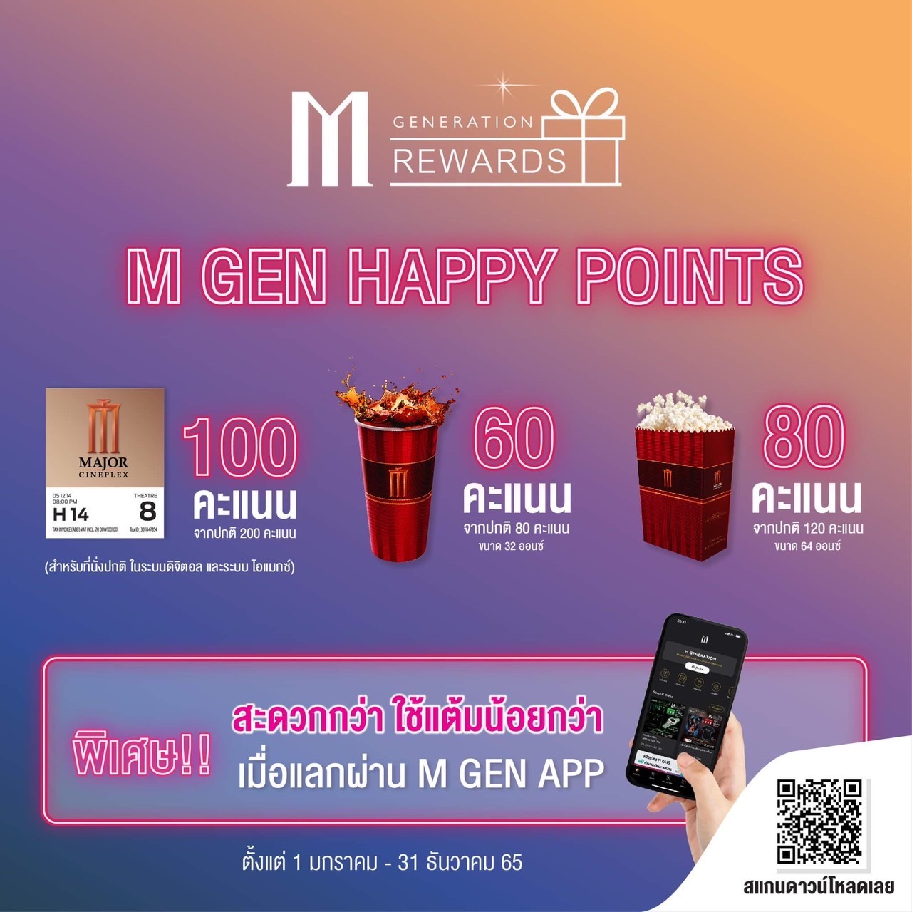 M GEN Happy Points ใช้คะแนน M GEN แลกรับตั๋วหนัง ,น้ำอัดลม และ ป็อปคอร์น