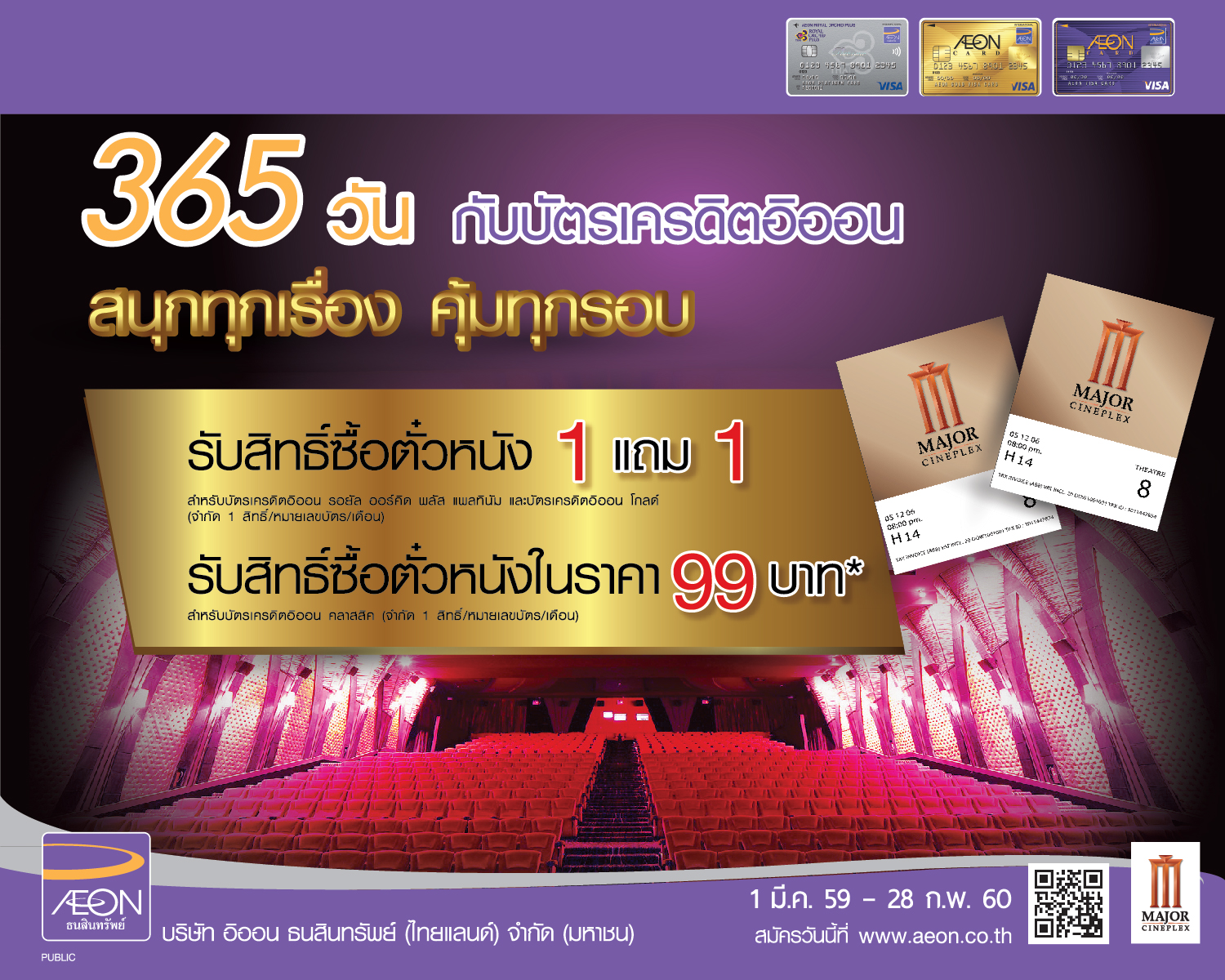● สิทธิพิเศษสำหรับผู้ถือบัตรเครดิต อิออน คลาสสิค ที่รูดซื้อบัตรชมภาพยนตร์ ณ เคาน์เตอร์ Box Office โรงภาพยนตร์เท่านั้น