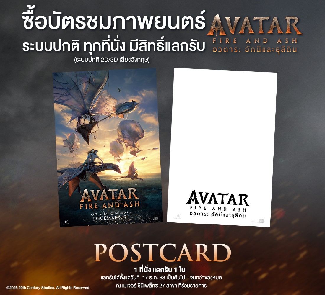• สำหรับบัตรชมภาพยนตร์ Avatar: Fire and Ash (ระบบปกติ 2D/3D เสียงอังกฤษ)