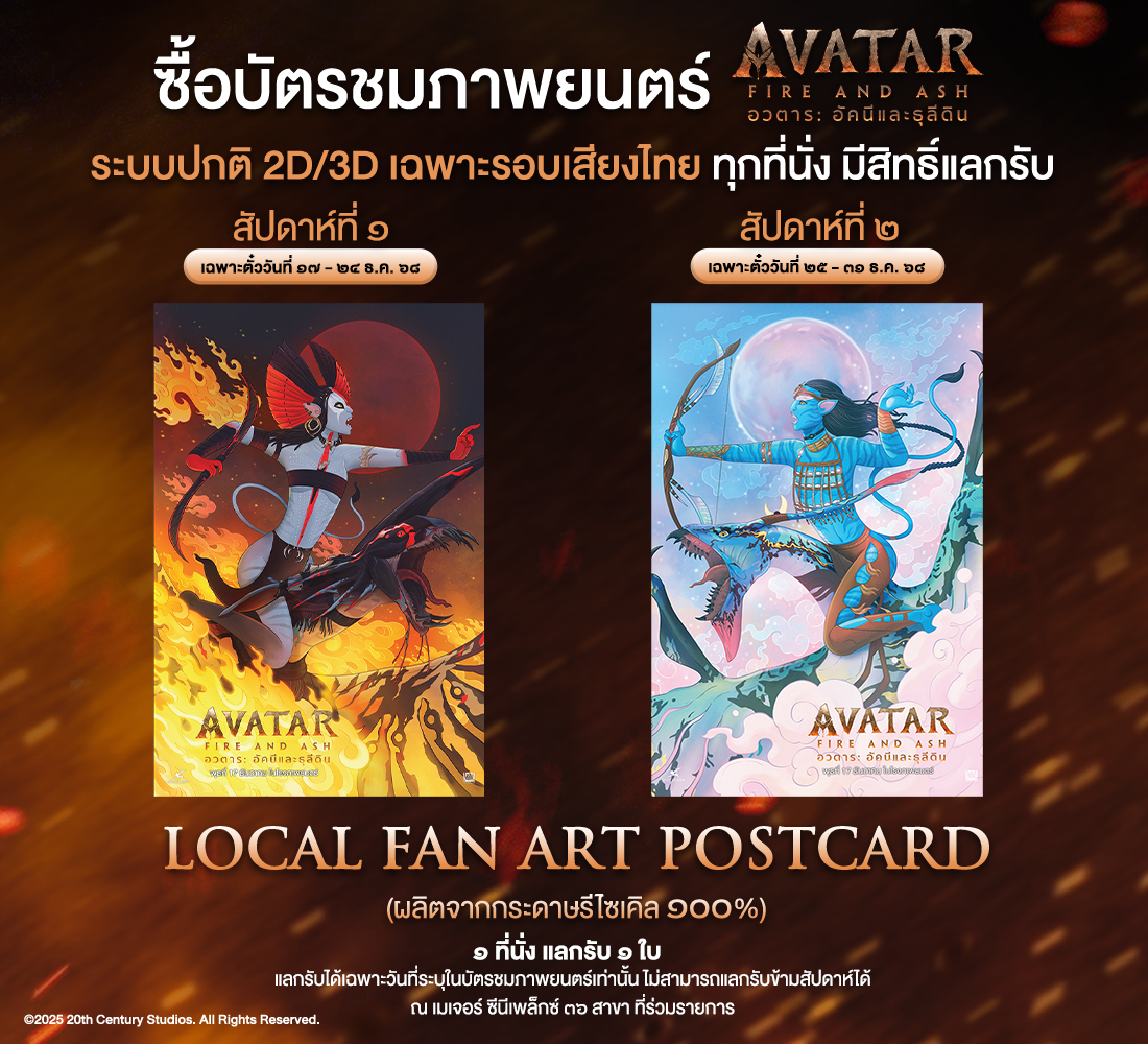 • สำหรับบัตรชมภาพยนตร์ Avatar: Fire and Ash (ระบบปกติ 2D / 3D เสียงภาษาไทย)