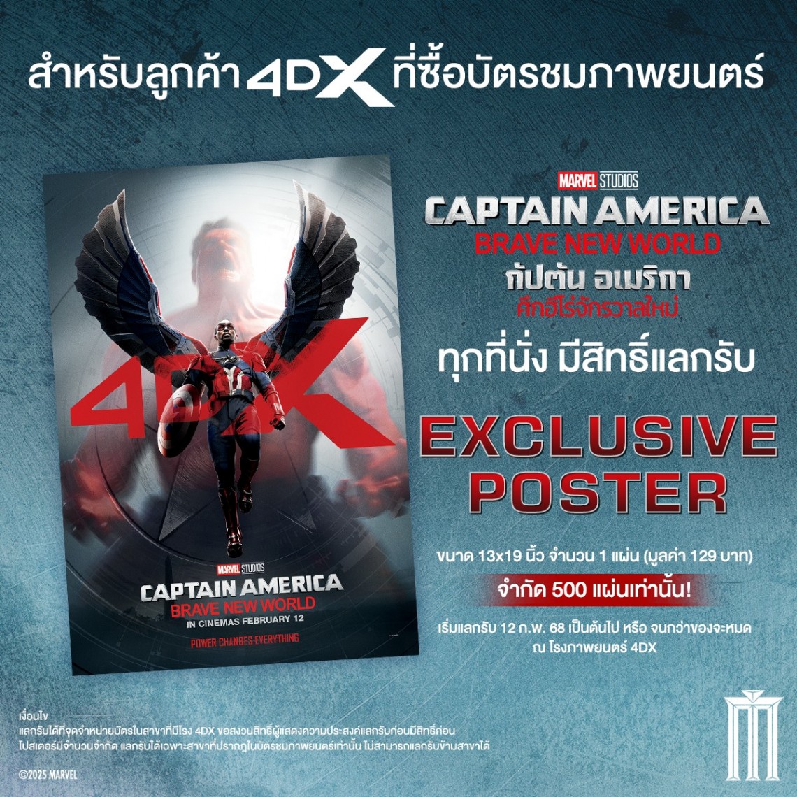 ซื้อบัตรชมภาพยนตร์เรื่อง “Captain America: Brave New World” ระบบ 4DX รับ Exclusive Poster ฟรี !