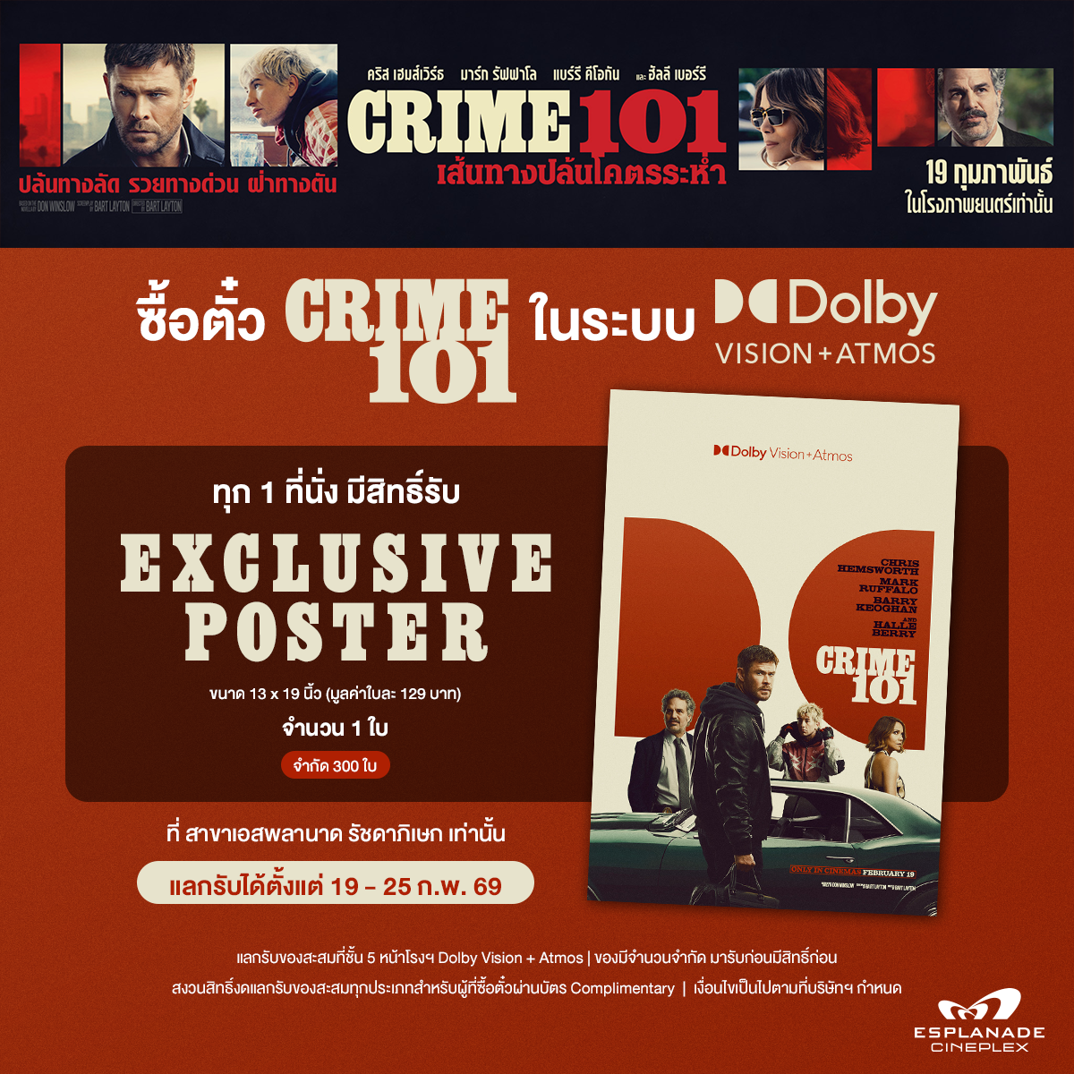 ซื้อบัตรชมภาพยนตร์เรื่อง “Crime 101” ระบบ Dolby Vision Atmos รับ Exclusive Poster ฟรี !