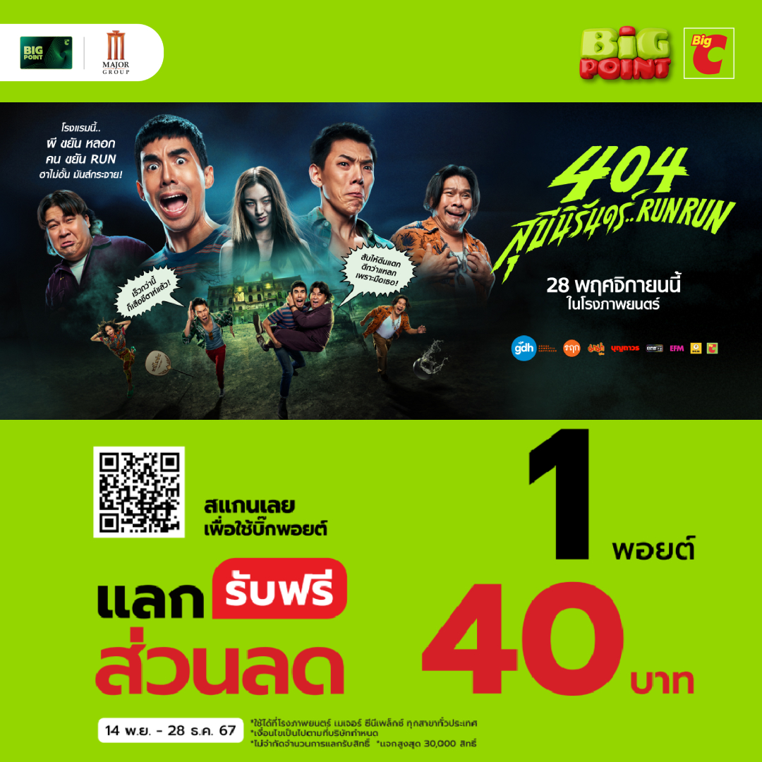 ส่วนลด 40 บาท สำหรับภาพยนตร์ 404 สุขีนิรันดร์ Run Run x Big C