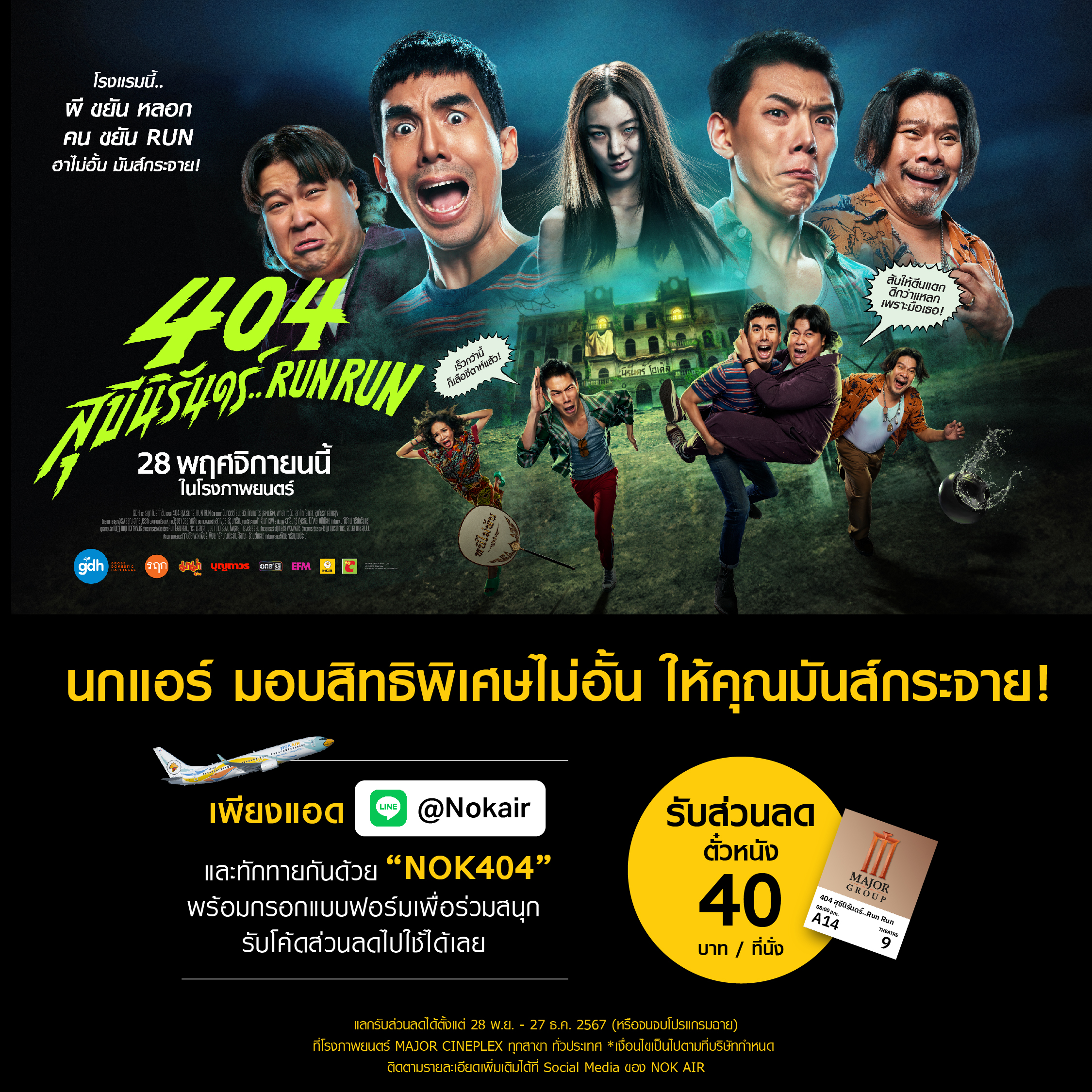 ส่วนลด 40 บาท สำหรับภาพยนตร์ 404 สุขีนิรันดร์ Run Run x Nok Air
