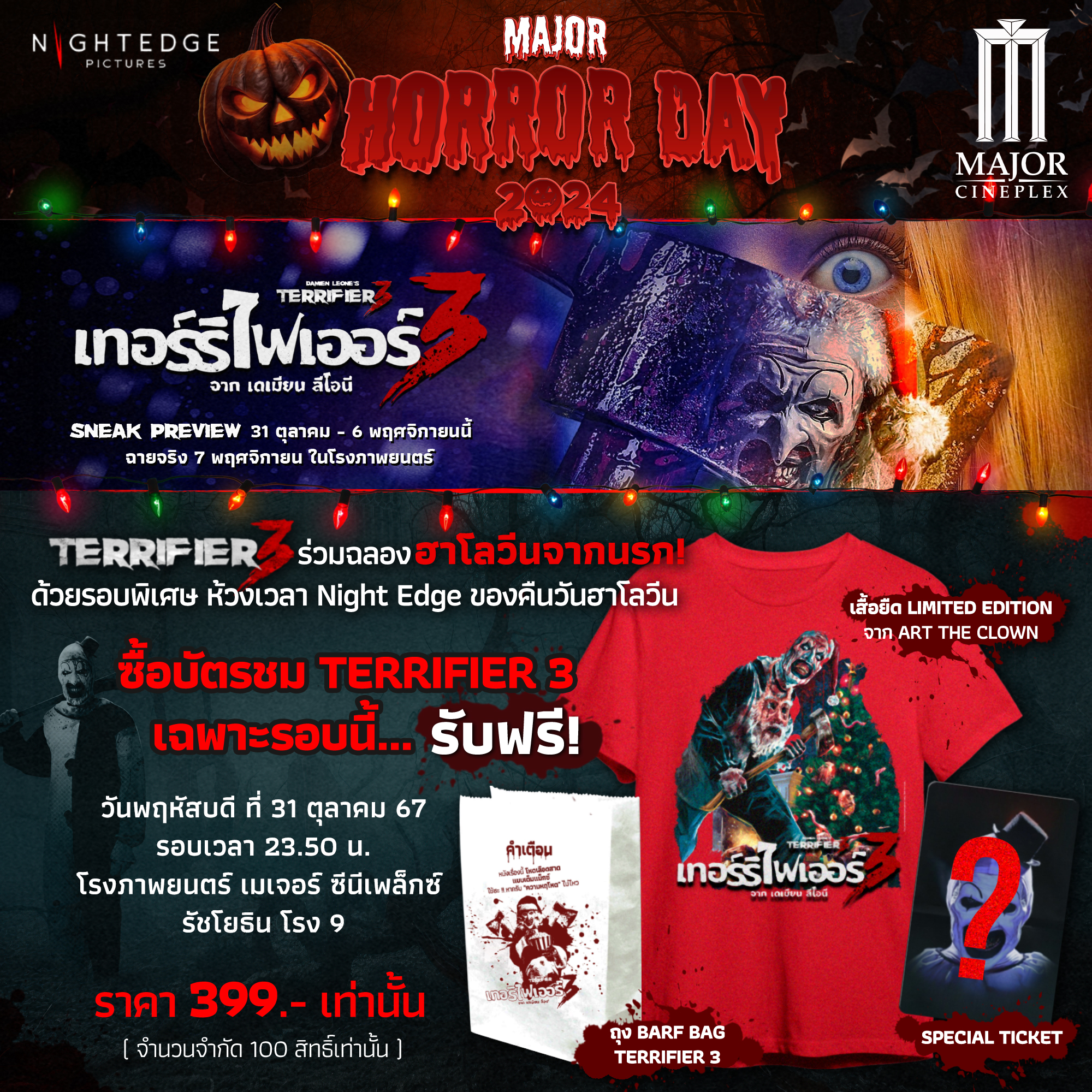 ซื้อบัตรเรื่อง Terrifier3 เฉพาะรอบ 23.50 น.ราคา 399 บาท / ที่นั่ง
