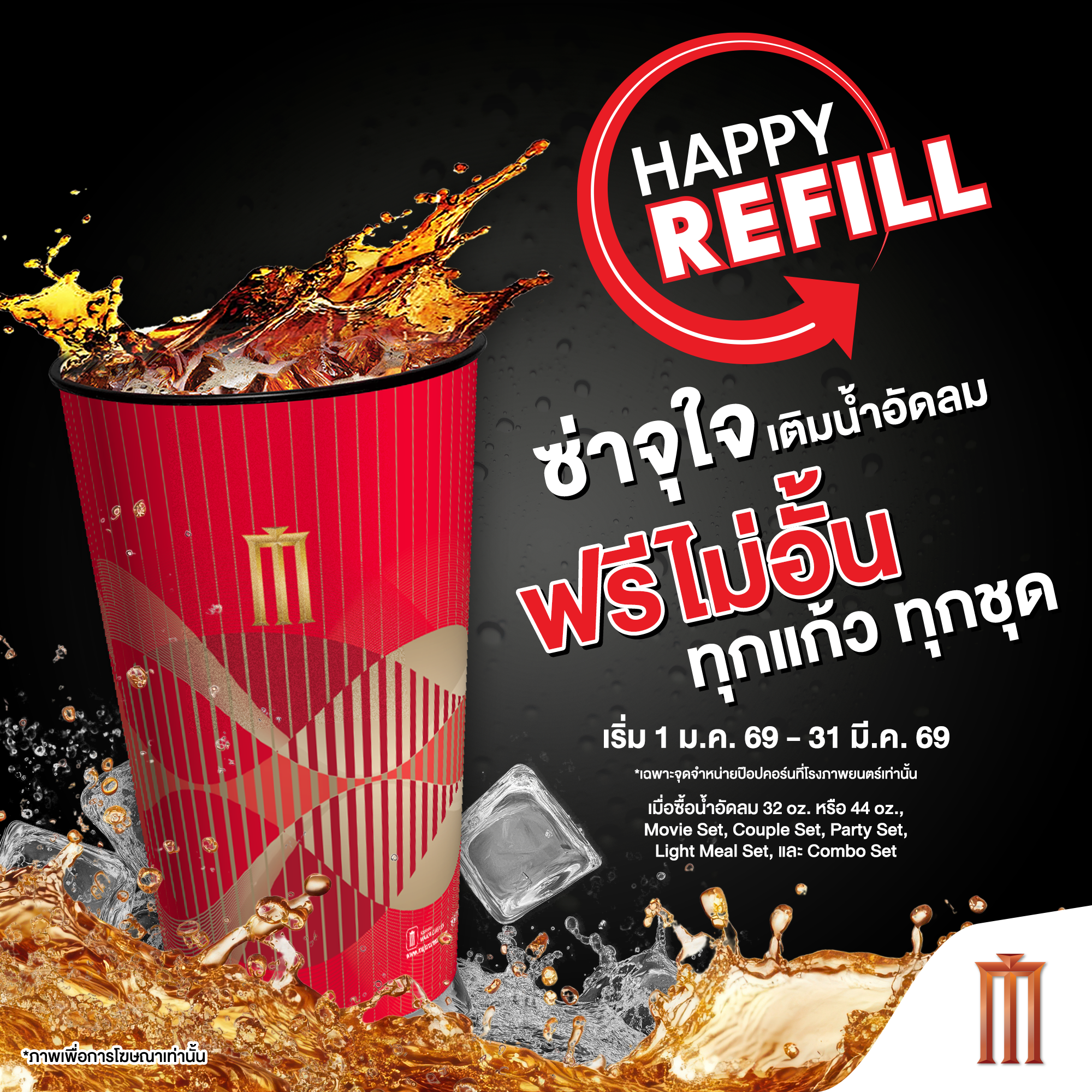 โปรโมชั่น Happy Refill รับสิทธิ์เติมน้ำอัดลมฟรี ไม่อั้น ทุกแก้ว ทุกชุด เพียงซื้อน้ำอัดลมตามขนาดและชุดดังนี้