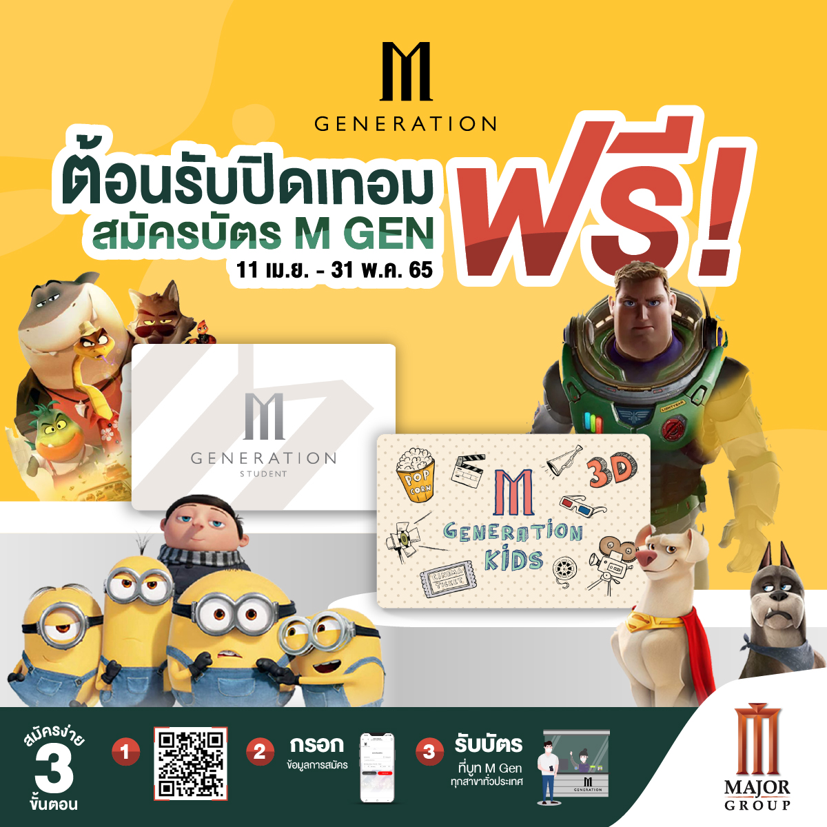- สิทธิพิเศษในการสมัครบัตร / ต่ออายุบัตร M GEN Kid สำหรับน้องๆ อายุไม่เกิน 12 ปี และ การสมัครบัตร / ต่ออายุบัตร M GEN Student สำหรับนักเรียน-นักศึกษา อายุไม่เกิน 23 ปี