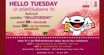 Hello Tuesday ซื้อตั๋วหนังวันอังคาร หลัง 6 โมงเย็น รับฟรี ส่วนลด JD Central 120 บาท