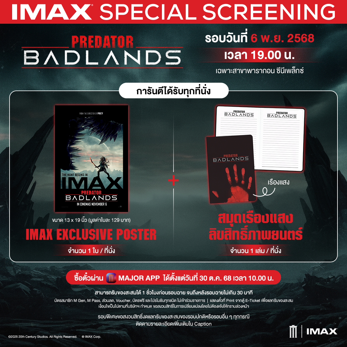 IMAX Special Screening ภาพยนตร์เรื่อง "Predator Badlands" 6 พฤศจิกายน 2568 พารากอน