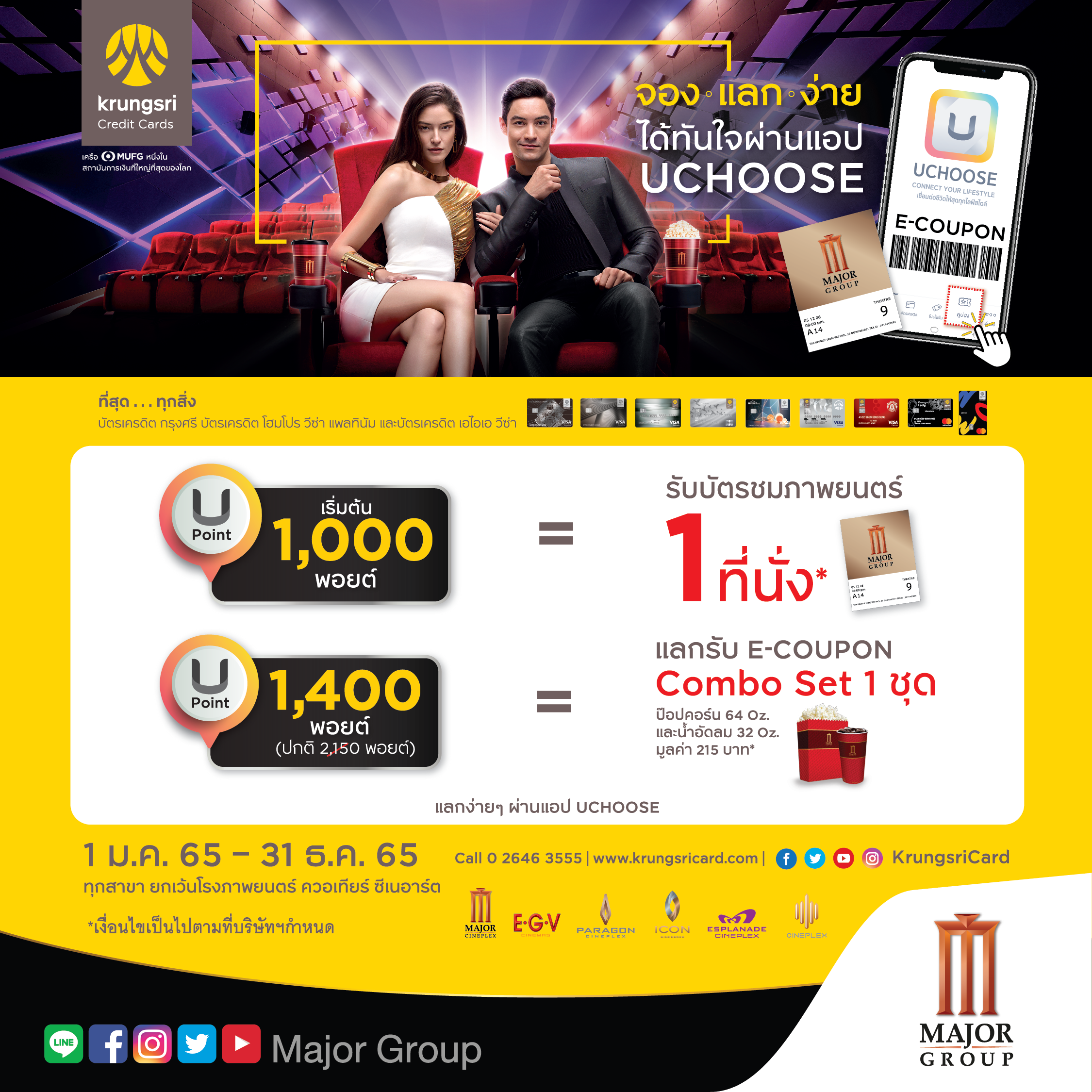 ทุกๆ 1,400 คะแนนสามารถแลกรับ Combo set 1 ชุด (Popcorn 64 Oz + Soft Drink 32 Oz)