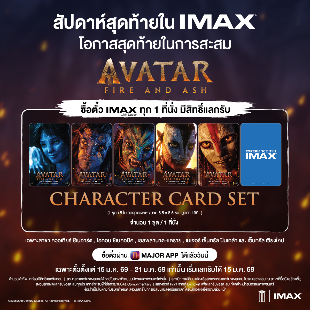 โอกาสสุดท้าย เมื่อซื้อบัตรชมภาพยนตร์เรื่อง “Avatar 3” ระบบ IMAX รับ Character Card Set ฟรี !