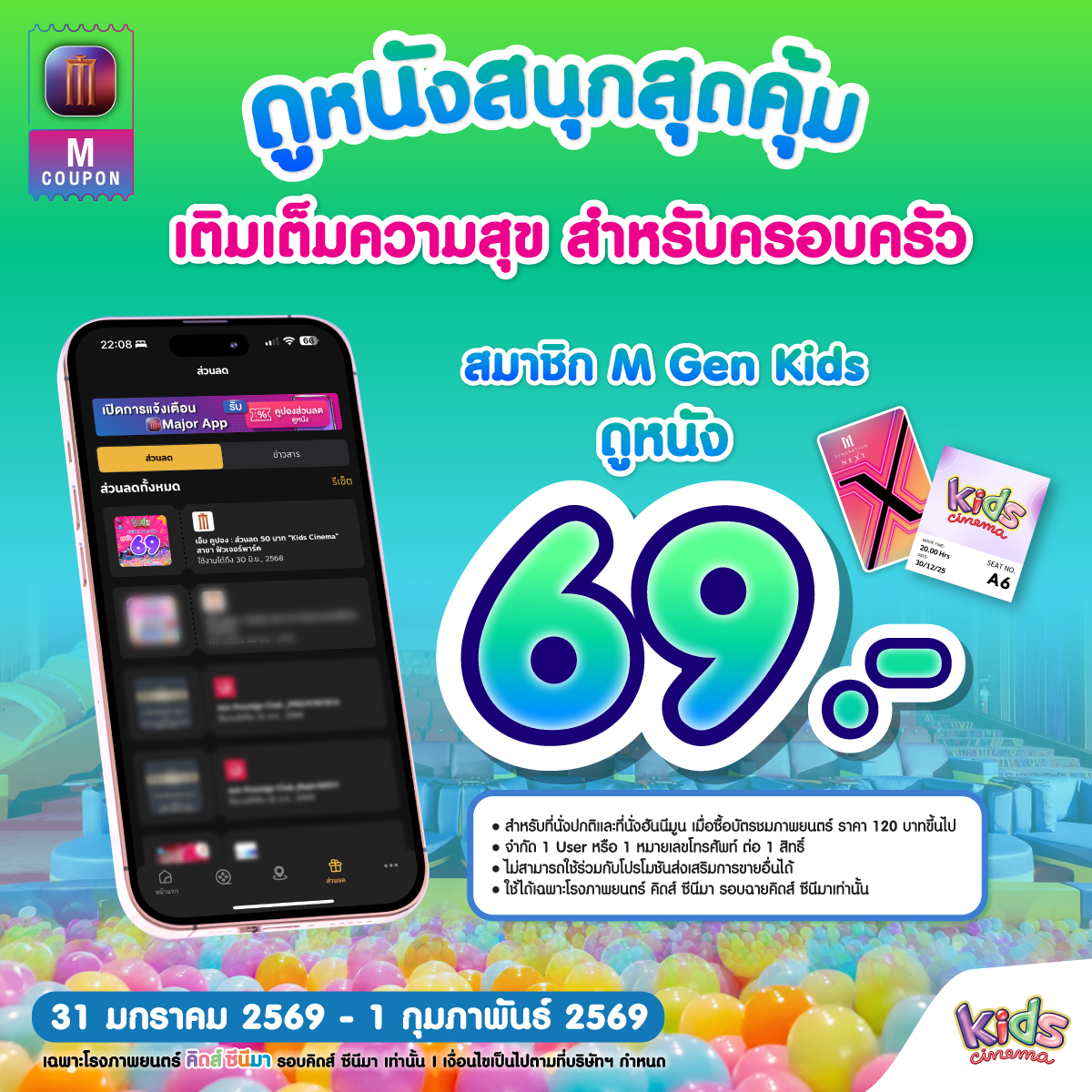 สมาชิก M GEN Kids ดูหนังเพียง 69.- ที่โรงภาพยนตร์คิดส์ ซีนีมา ทุกสาขา ทั่วประเทศ