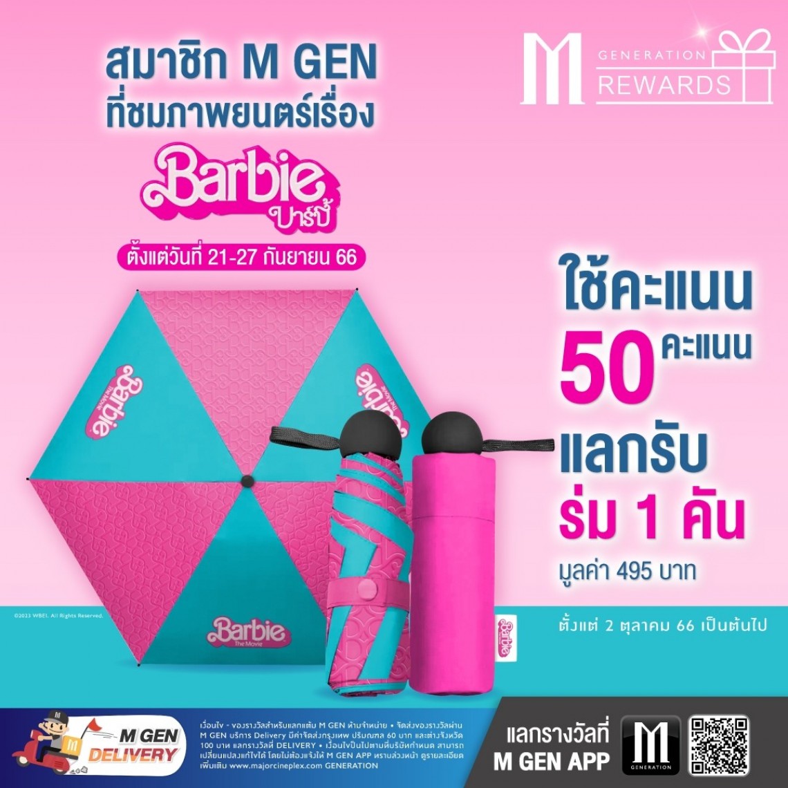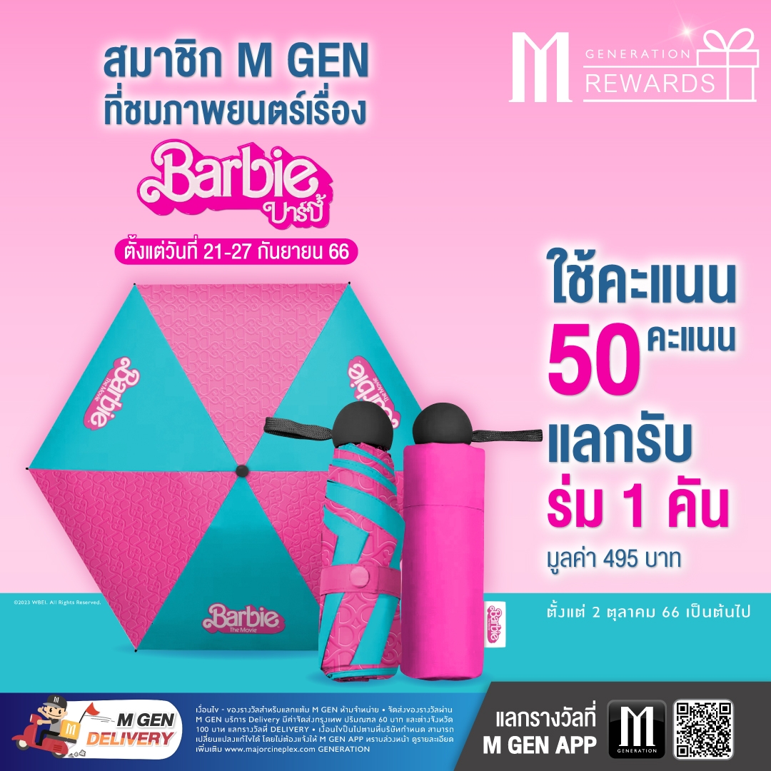 สมาชิก M GEN ใช้คะแนน แลกรับร่ม จากภาพยนตร์เรื่อง Barbie ในระบบ IMAX