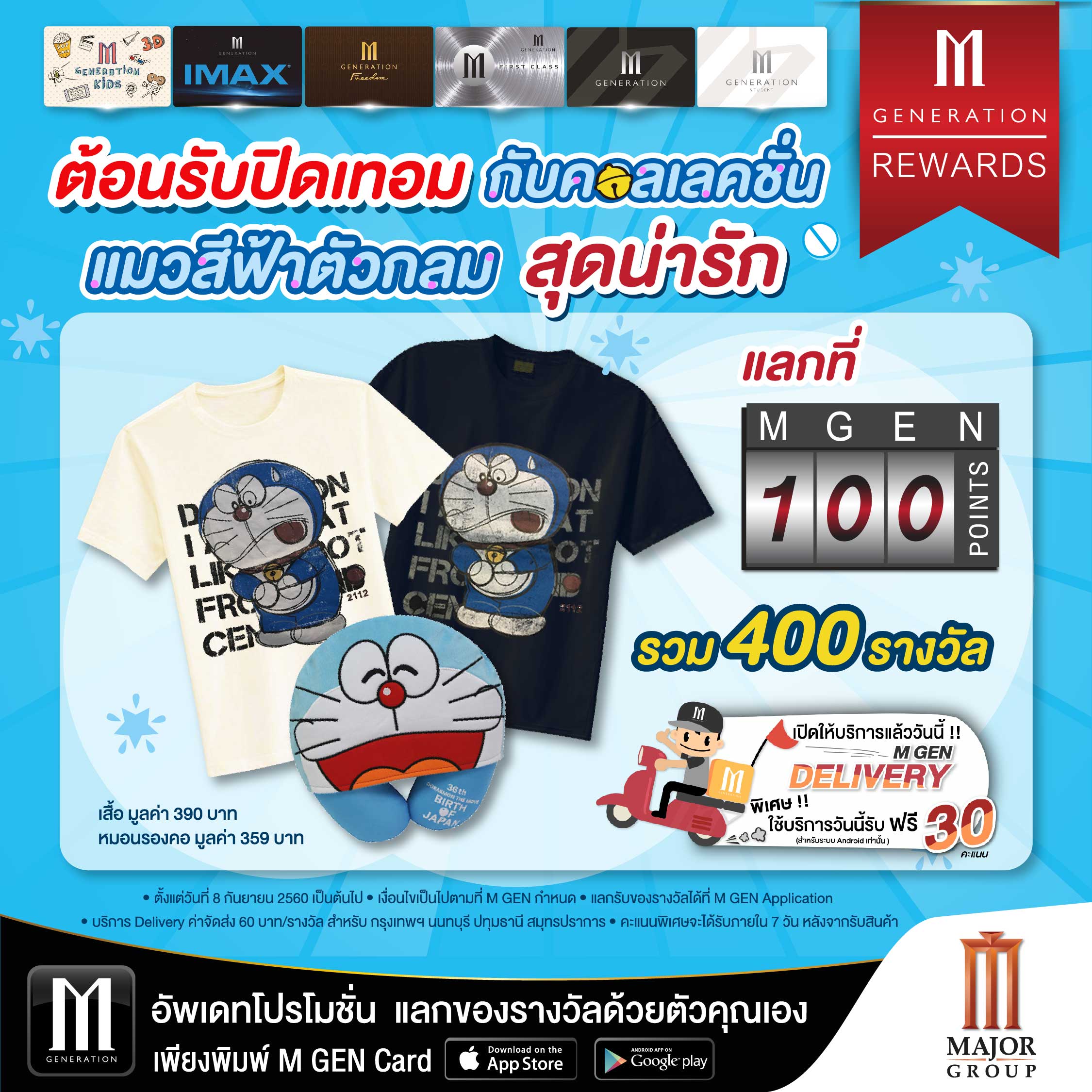 คะแนน M GEN 100 คะแนน แลกรับ เสื้อยืดโดราเอมอน 1 ตัว