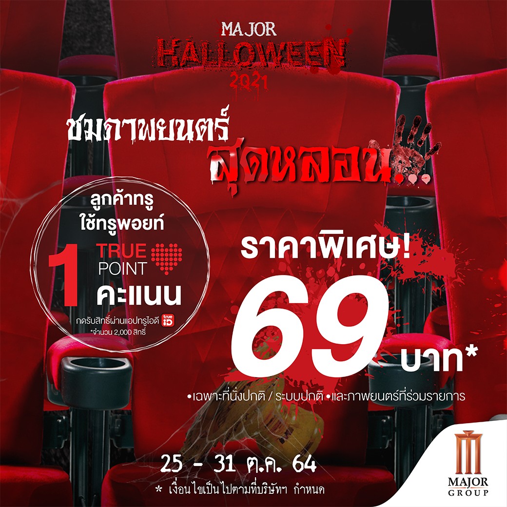 ดูหนังผีราคาพิเศษ 69 บาท กับทรู (25 – 31 ตุลาคม 2564) จำนวน 2,000 สิทธิ์
