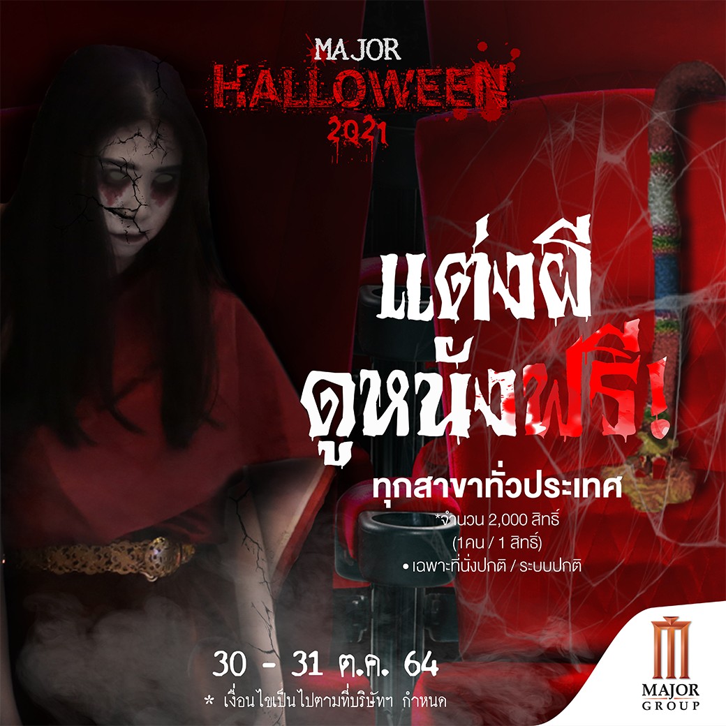 แต่งผี ดูหนังฟรี เพียงแต่งกายหรือแต่งหน้าผีไปดูหนังในวันฮาโลวีน รับสิทธิ์ชมภาพยนตร์ฟรี 1 ที่นั่ง รับสิทธิ์ได้ที่จุดจำหน่ายบัตรชมภาพยนตร์