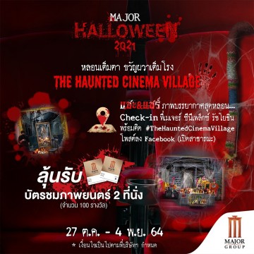 #ฮาโลวีน ปีนี้ เมเจอร์ ซีนีเพล็กซ์ขอชวนคุณมาร่วมสนุกแต่งชุดเป็นตัวละครที่ชอบในหนังผีเรื่องโปรด ลงใน TikTok พร้อมติด #ฮาโลวีน #MajorHalloween2021 ลุ้นรับบัตรชมภาพยนตร์ 2 ที่นั่ง จำนวน 500 รางวัล)