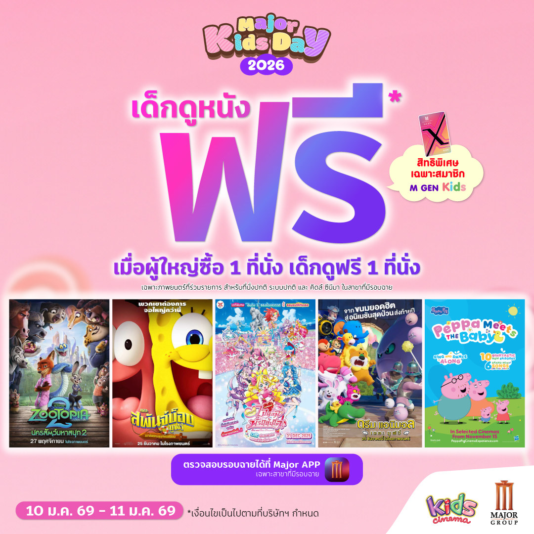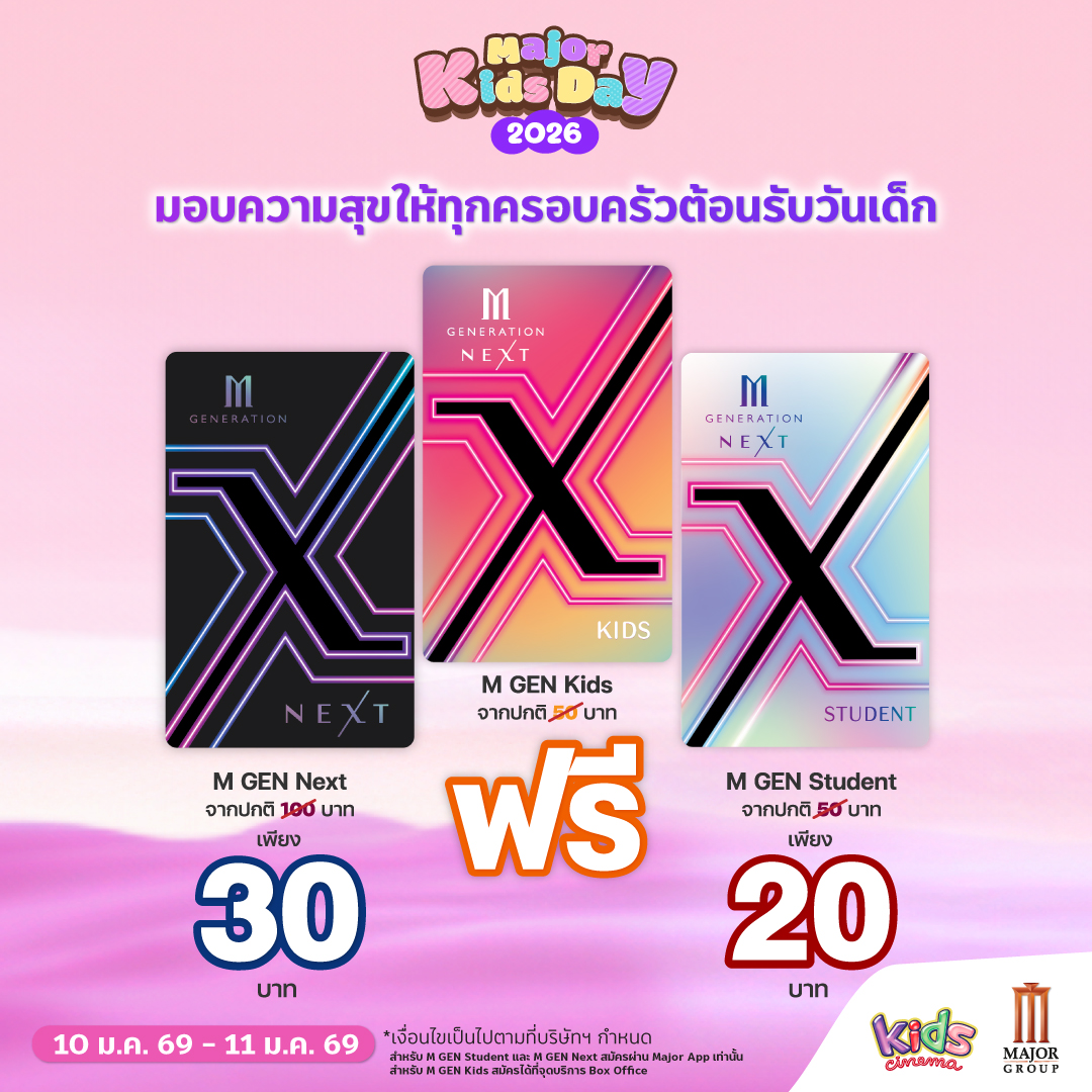 • 10 มกราคม 69 – 12 มกราคม 69 สมัคร M GEN Kids ฟรีที่ โรงภาพยนตร์ เครือเมเจอร์ฯ ทุกสาขาทั่วประเทศ | สมัคร M GEN Student เพียง 20.- (ปกติ 50.-) | M GEN Regular สมัครเพียง 30.- (ปกติ 100.-)