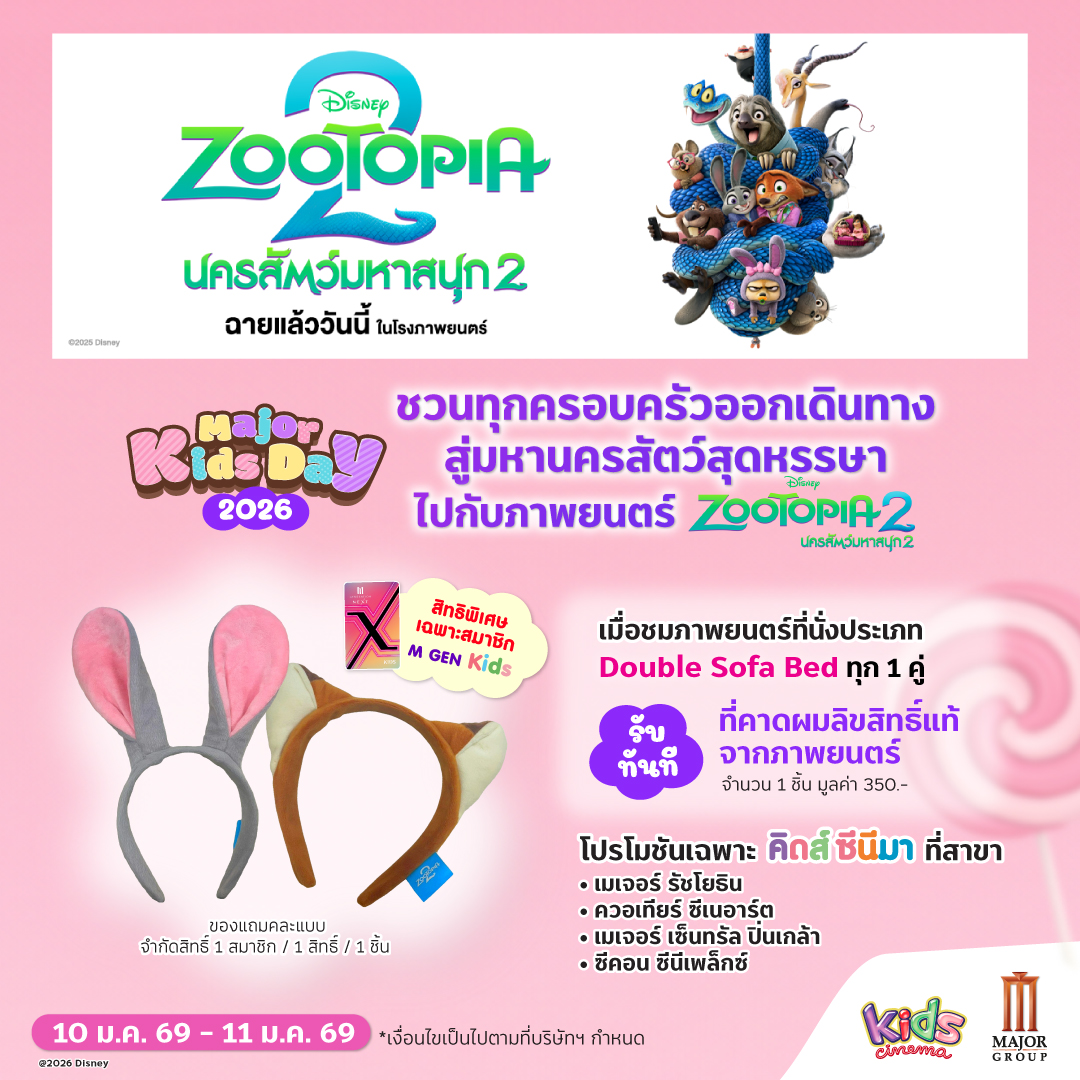• สิทธิพิเศษสำหรับสมาชิก M GEN Kids เมื่อซื้อที่นั่งประเภท Double Sofa Bed จำนวน 1 คู่ เพื่อชมภาพยนตร์เรื่อง Zootopia 2 รับทันที ที่คาดผมลิขสิทธิ์แท้จากภาพยนตร์ จำนวน 1 ชิ้น มูลค่า 350.- (ของแถมคละแบบ เลือกได้ 1 แบบ)