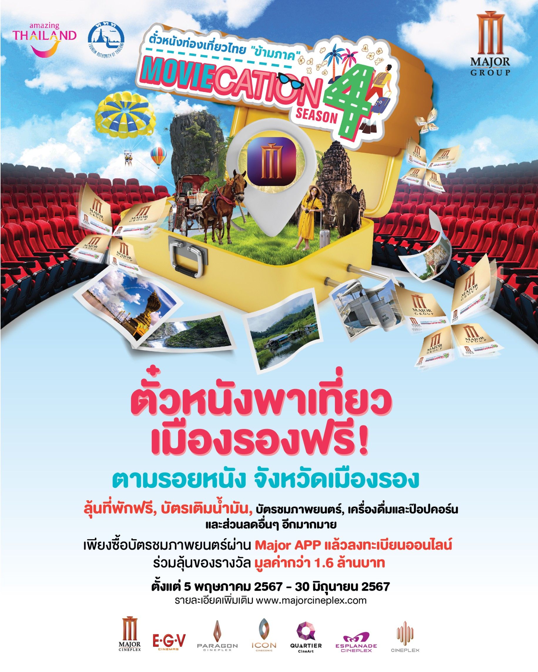 เมเจอร์ ซีนีเพล็กซ์ กรุ้ป ผนึก ททท. ชวนตามรอยหนัง เที่ยวเมืองรอง กับแคมเปญ MOVIECATION SEASON 4 ตั๋วหนังท่องเที่ยวไทย “ข้ามภาค” ลุ้นรางวัลรวมมูลค่ากว่า 1.6 ล้าน