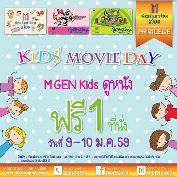 • สิทธิพิเศษดูหนังฟรี สำหรับสมาชิก M GEN KIDS (อายุไม่เกิน 12 ปี) เท่านั้น