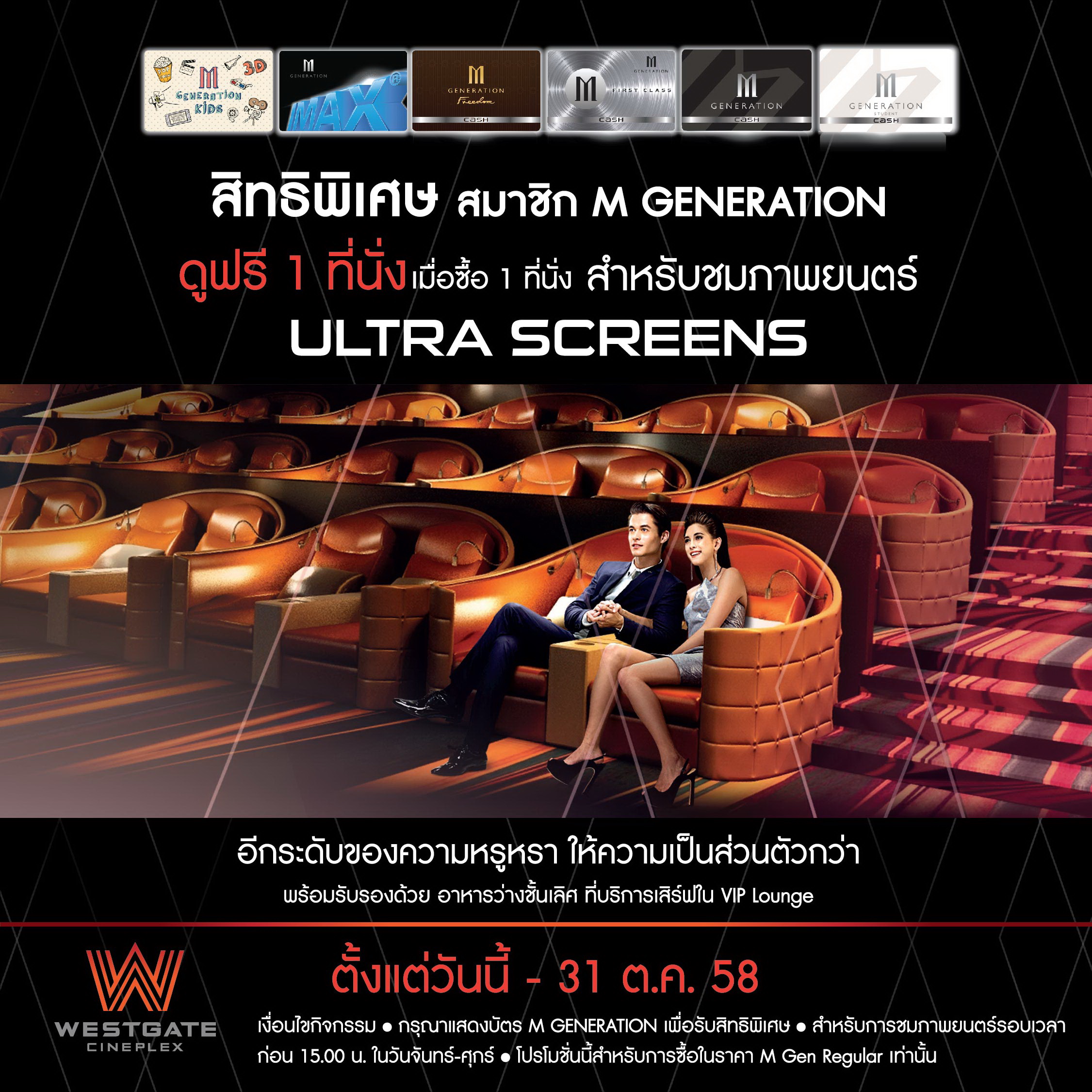 • สิทธิพิเศษสำหรับ สมาชิก M GENERATION ทุกคลับ แสดงบัตรสมาชิก ที่ Box Office ก่อนใช้สิทธิ์