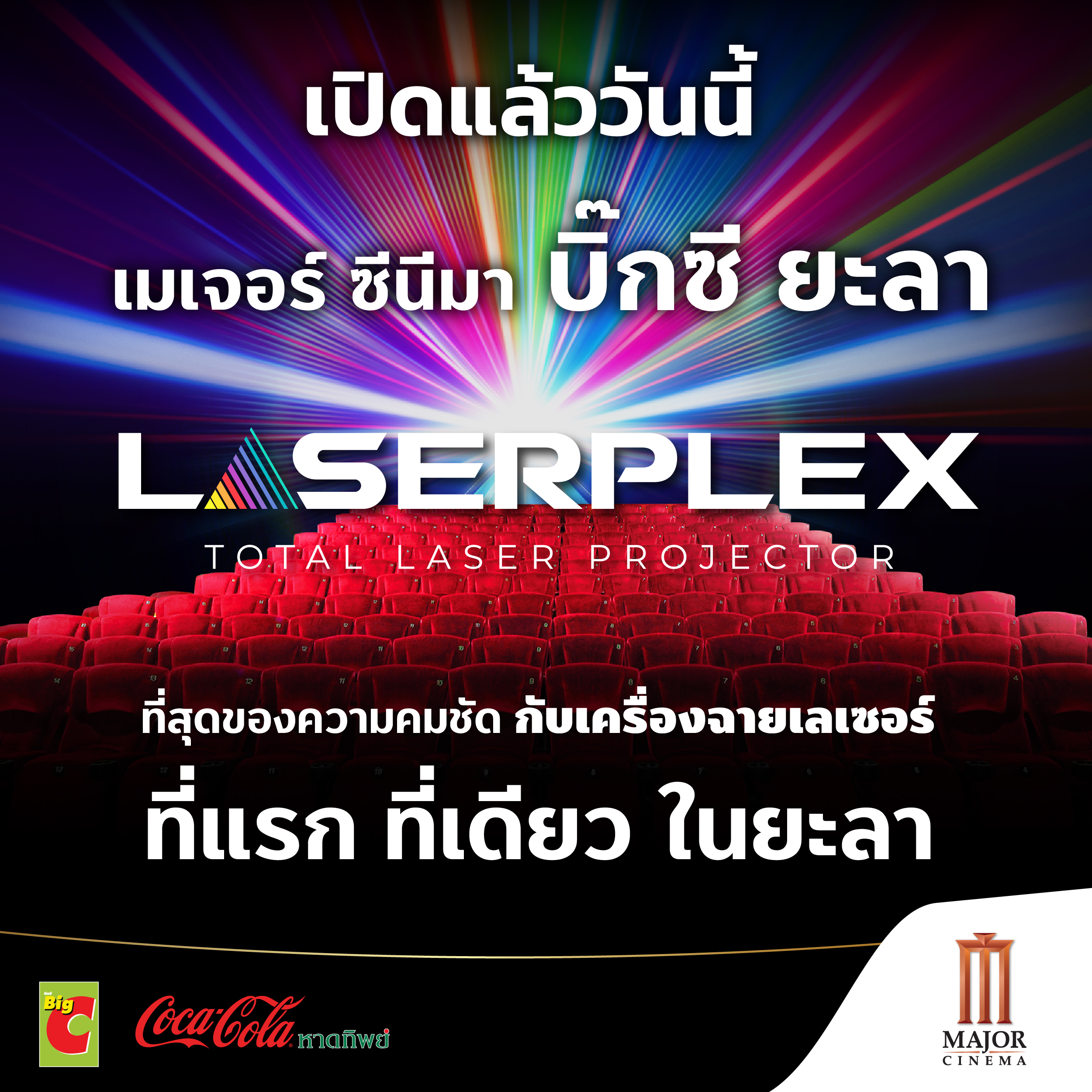โรงภาพยนตร์ เมเจอร์ ซีนีมา บิ๊กซี ยะลา ครั้งแรกในจังหวัดยะลา พบกับเครื่องฉายเลเซอร์ ที่สุดของความคมชัดเหนือระดับ ภาพคมชัดกว่า 4 เท่า สีสันสมจริงมากถึง 36 ล้านเฉดสี เครื่องฉายเลเซอร์ RGB ใหม่ล่าสุด ที่แรก ที่เดียว ในยะลา