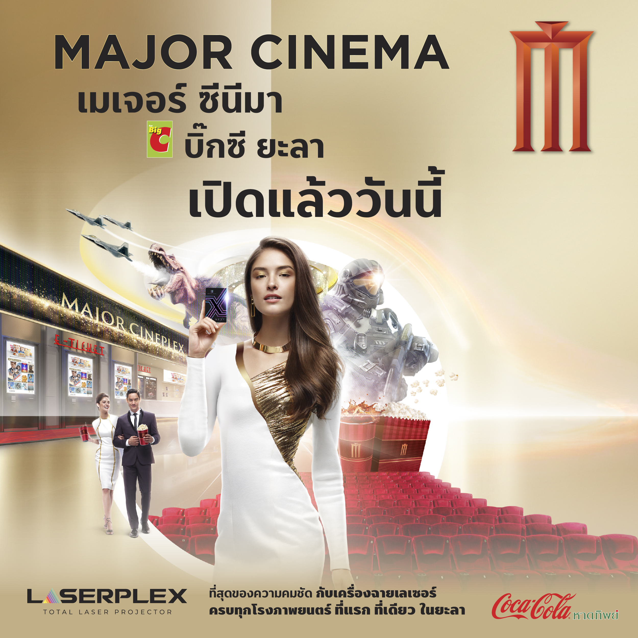 สุดพิเศษ ครั้งแรกกับป๊อปคอร์นเมเจอร์และโค้ก ร่วมฉลองเปิดสาขาใหม่ เมเจอร์ ซีนีมา บิ๊กซี ยะลา จำเสิร์ฟป๊อปคอร์นอร่อยๆ เพียงชุดละ 99 บาท รับทัน! ป๊อปคอร์น 1 กล่อง (64 ออนซ์) / น้ำอัดลม จำนวน 1 แก้ว (32 ออนซ์)