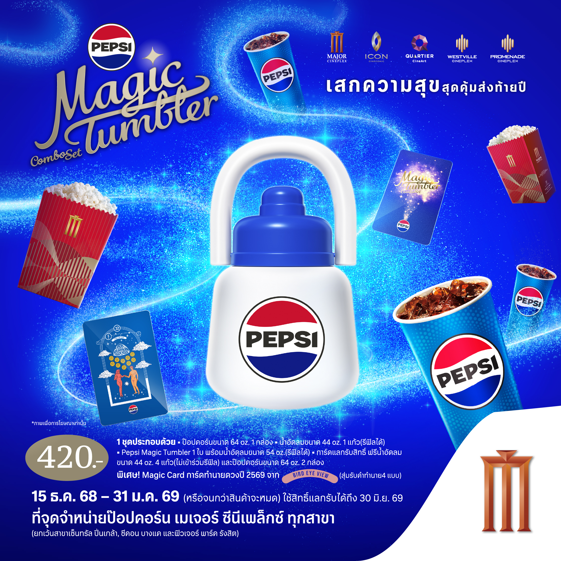 Major Cineplex สาขาที่จำหน่ายเป๊ปซี่ เท่านั้น ได้แก่ ไอคอน ซีเนคอนิค, ควอเทียร์ ซีเนอาร์ต, พรอมานาด ซีนีเพล็กซ์,เวสต์วิลล์ ซีนีเพล็กซ์, เมเจอร์ ซีนีเพล็กซ์ ทุกสาขาทั่วประเทศ (ยกเว้น พารากอน ซีนีเพล็กซ์, เมเจอร์ ซีนีมา ทุกสาขา, อีจีวี ทุกสาขา, เอสพลานาด ซีนีเพล็กซ์ ทุกสาขา, พาราไดซ์ ซีนีเพล็กซ์, เมกา ซีนีเพล็กซ์, ซีคอน ซีนีเพล็กซ์, เวสต์เกต ซีนีเพล็กซ์ , อีสต์วิลล์ ซีนีเพล็กซ์ , โคราช ซีนีเพล็กซ์, อยุธยา ซิตี้พาร์ค ซีนีเพล็กซ์, ไดอาน่า ซีนีเพล็กซ์ , หาดใหญ่ ซีนีเพล็กซ์, บลูพอร์ต ซีนีเพล็กซ์, ศรีราชา ซีนีเพล็กซ์, จันทบุรี ซีนีเพล็กซ์ , เซ็นทรัล นครปฐม ซีนีเพล็กซ์ และเมเจอร์ ซีนีเพล็กซ์ เฉพาะสาขา เซ็นทรัล ปิ่นเกล้า, ซีคอน บางแค และ ฟิวเจอร์ พาร์ค รังสิต)