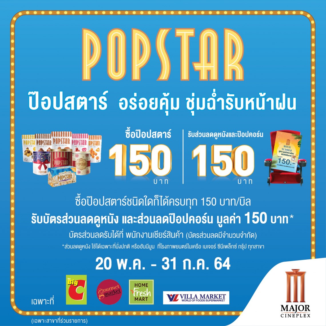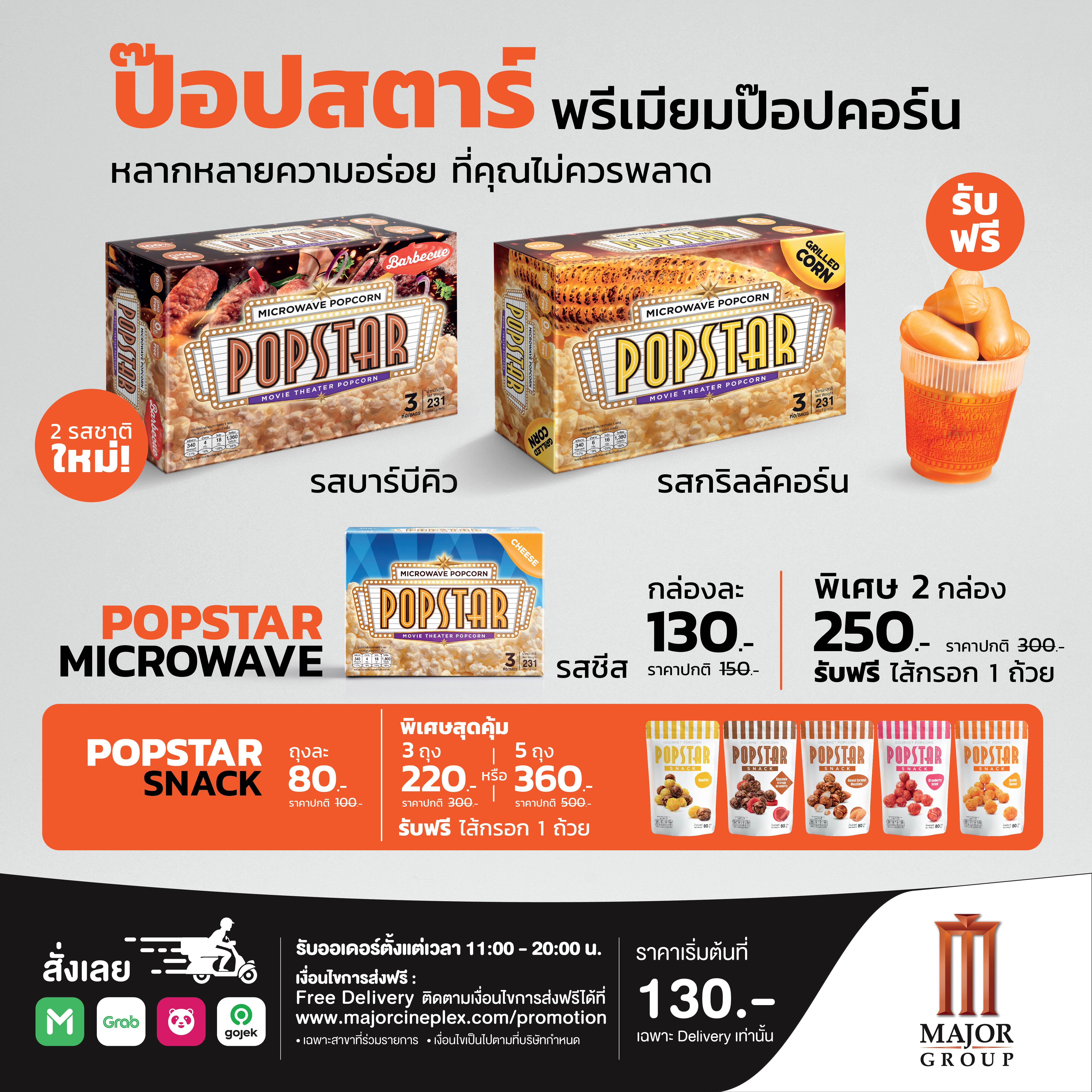 พิเศษ!! ช่วงแนะนำโปรโมชั่น ป๊อปสตาร์ ป๊อปคอร์นไมโครเวฟ ราคากล่องละ 130 บาท (ปกติ 150 บาท) ซื้อ 2 กล่อง ราคาเพียง 250 บาท (ปกติ 300 บาท)
