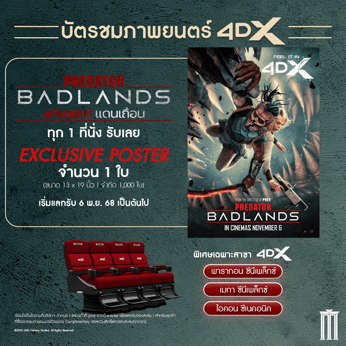 ซื้อบัตรชมภาพยนตร์เรื่อง "Predator Badlands" ระบบ 4DX รับ Exclusive Poster ฟรี !