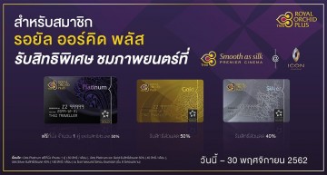 ลูกค้าการบินไทยบัตรประเภท ROP Platinum, Gold และ Silver รับสิทธิ์ต่างๆได้ที่ Thai Smooth as silk Premier Cinema @ icon cineconic เมื่อนำเลขหน้าบัตร ROP มารับสิทธิ์ในเลาจน์