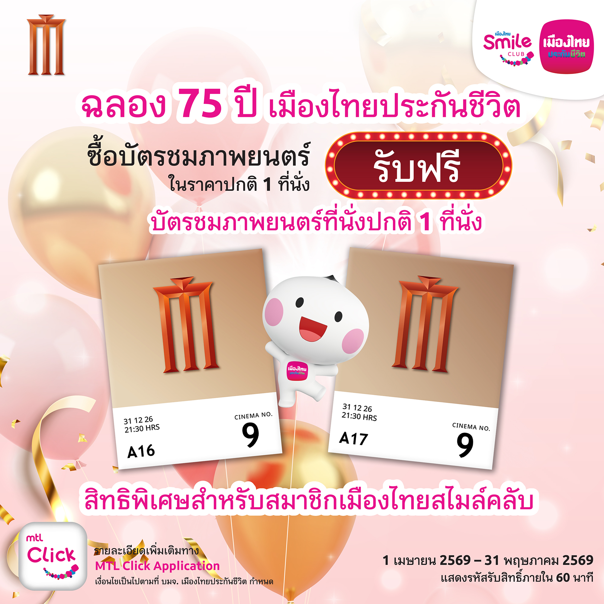 เมืองไทยสไมล์คลับ ฉลอง 75 ปี ซื้อตั๋วหนัง 1 ฟรี 1