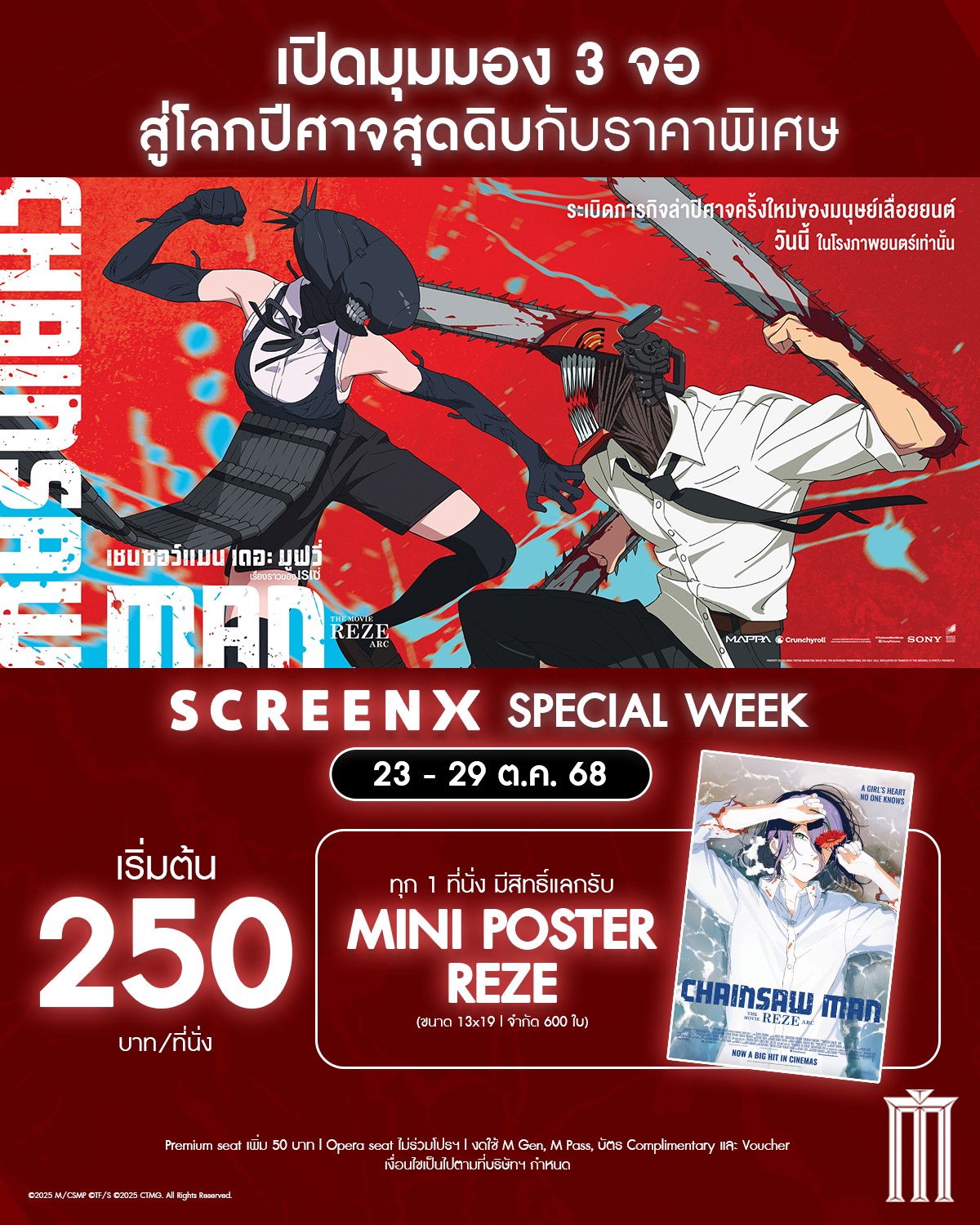 1. ราคาพิเศษสำหรับชมภาพยนตร์เรื่อง Chainsaw man ระบบ Screen X รอบฉายวันที่ 23 – 29 ต.ค. 68 เท่านั้น