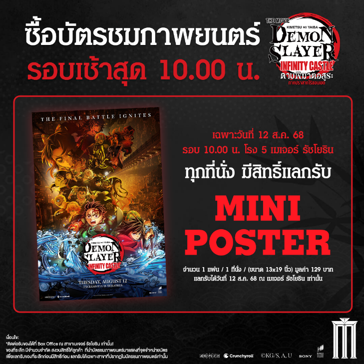 รอบพิเศษ ซื้อบัตรชมภาพยนตร์ล่วงหน้าเรื่อง “Demon Slayer: Infinity Castle” รับ Mini Poster ฟรี !