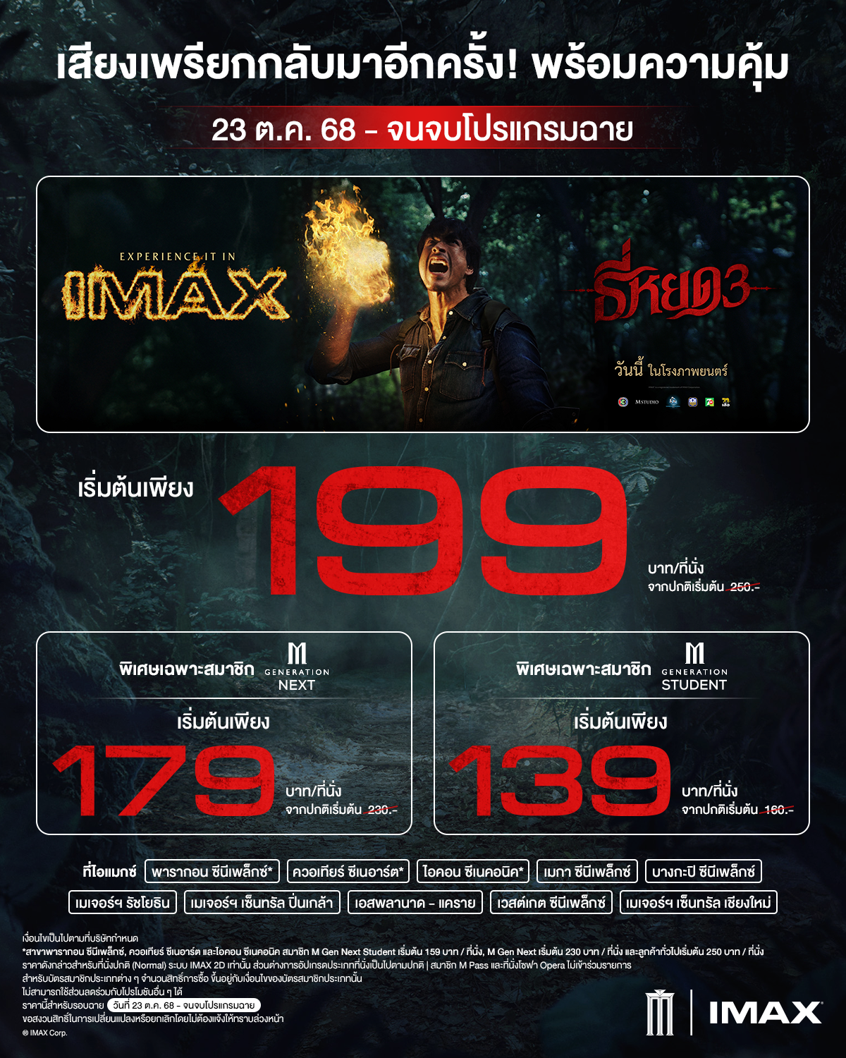 ราคาพิเศษสำหรับชมภาพยนตร์ธี่หยด 3 ระบบ IMAX with Laser รอบฉายวันที่ 23 ต.ค. 68 - จนจบโปรแกรมฉาย