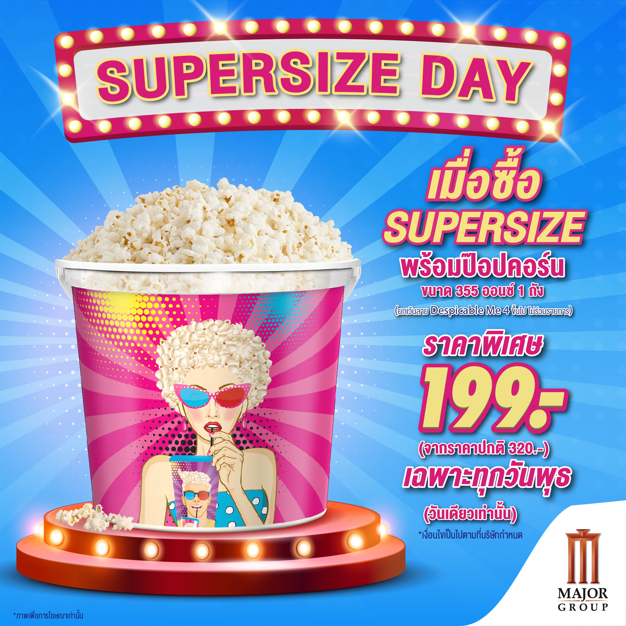 Supersize Day ราคาพิเศษ 199 บาท เฉพาะจุดจำหน่ายป๊อปคอร์นในโรงภาพยนตร์เท่านั้น