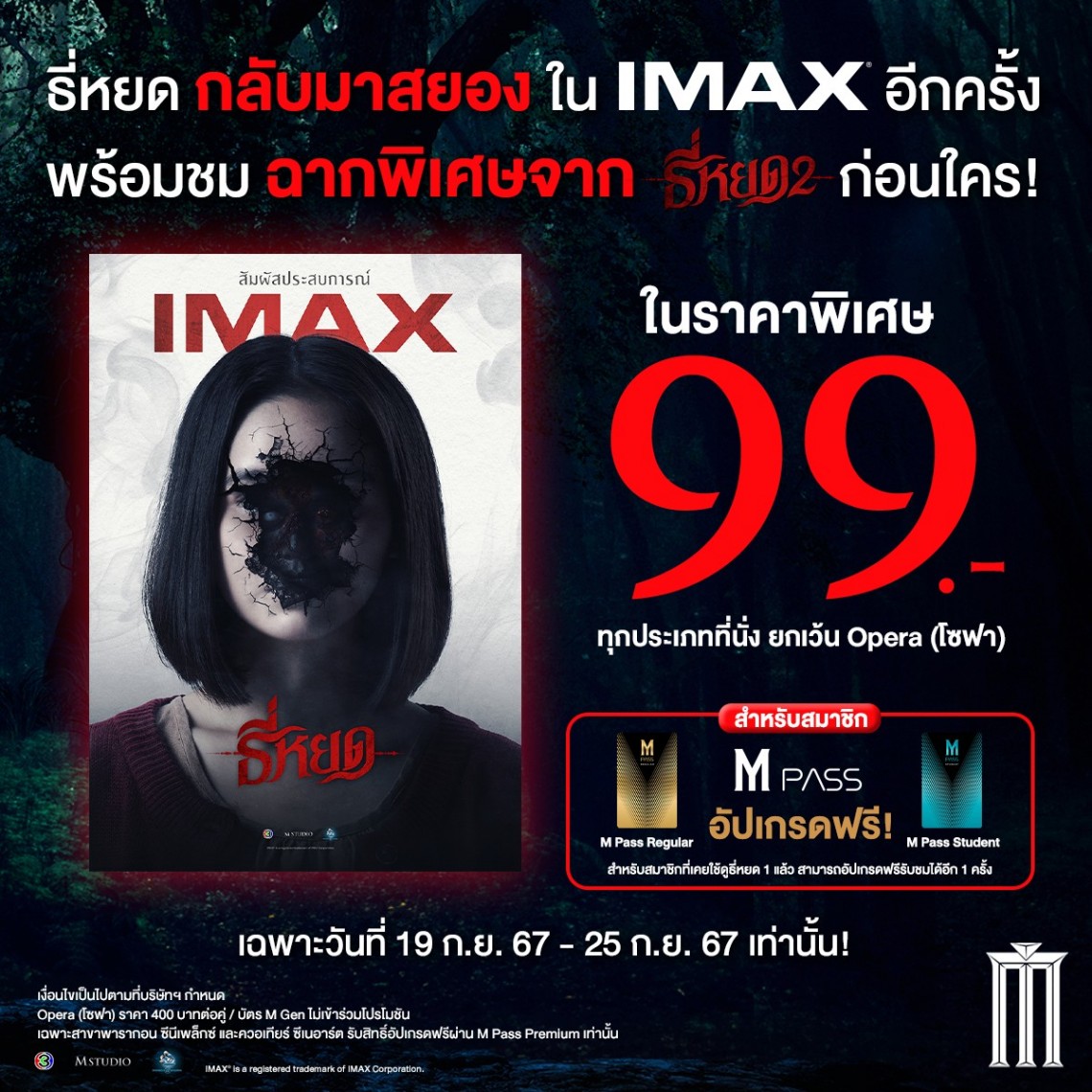 ราคาพิเศษสำหรับ “ธี่หยด 1” (Re-release) ที่กลับมาฉายที่โรงภาพยนตร์ IMAX with Laser และ IMAX ตั้งแต่ 19 – 25 ก.ย. 67